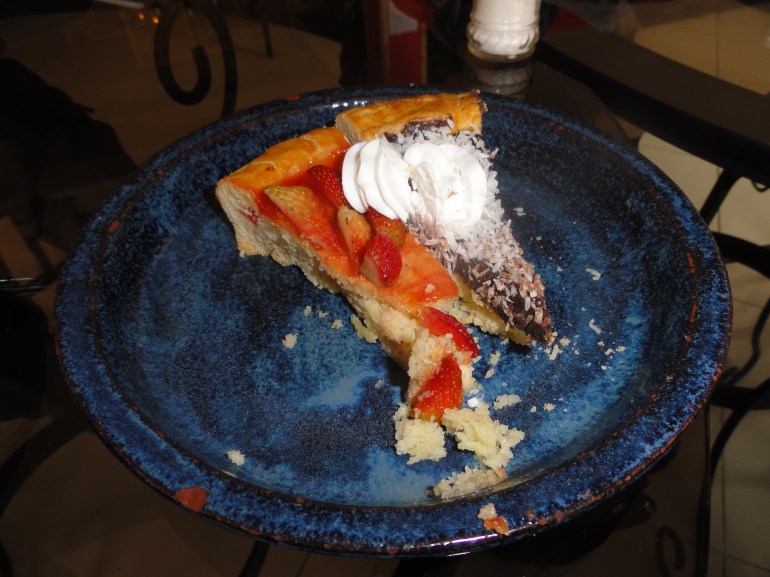 The next day for lunch we went to Aba Guben Bakery and had two of the best pizzas I’ve had in Ethiopia…we also had dessert. Me and Deb each got a slice of pie and then split them: strawberry and chocolate coconut. Heaven. I’ll be honest, Addis is not my favourite Ethiopian city, but man, does it have some awesome restaurants. So now I feel really well fed : ) I also got a cinnamon roll with raisins. Again, heaven.