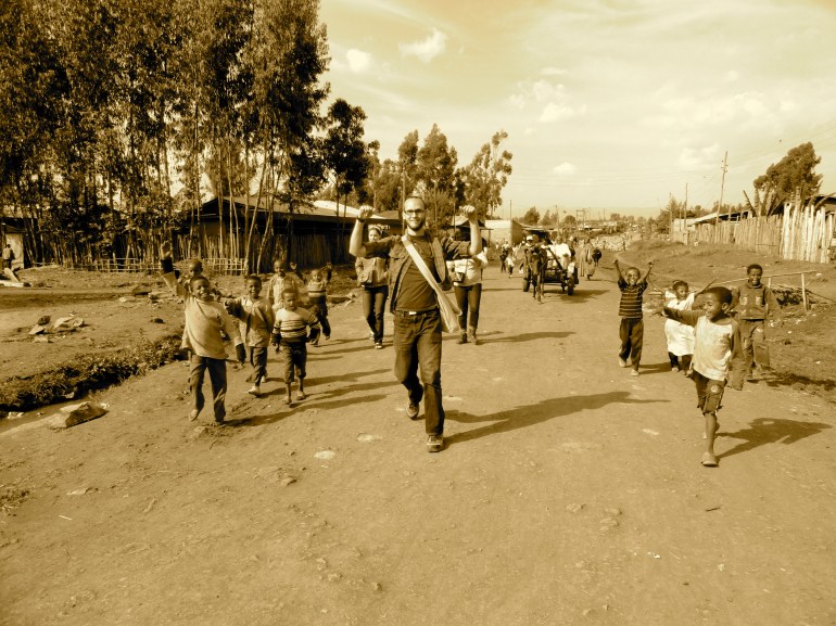 Joel, leading our adoring fans in a chant on one of our afternoon walks in Sagure.