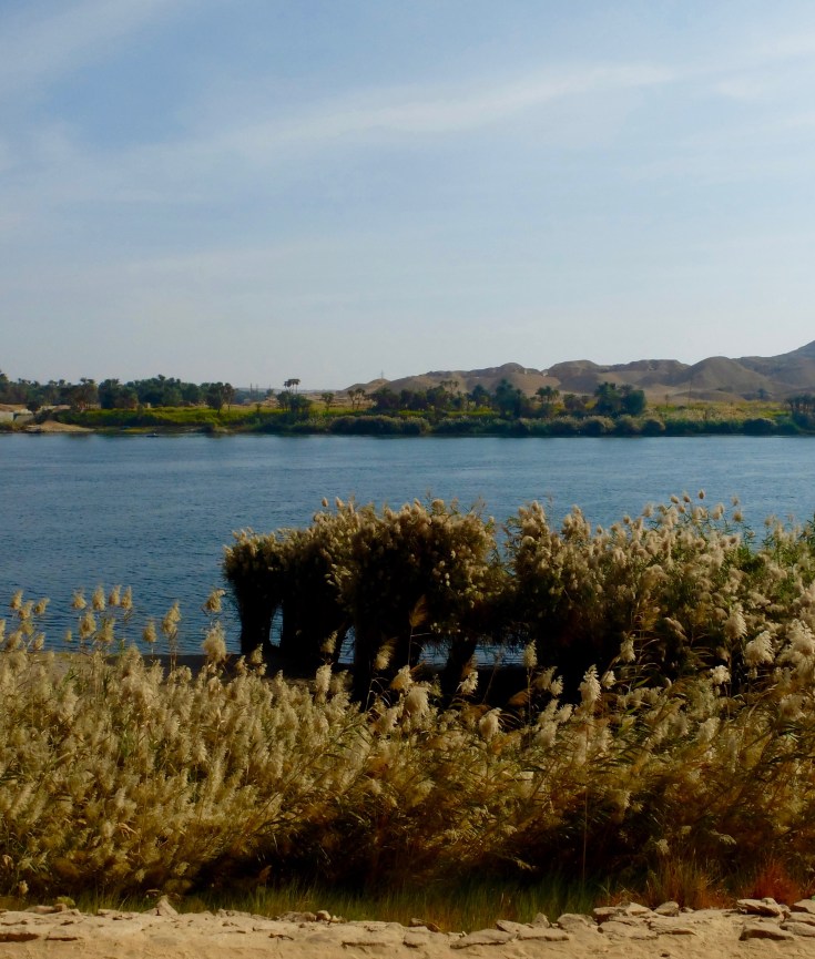 It was hard to make up my mind whether to pay more attention to the engravings on my right or the Nile River on my left, both offered impressive views: