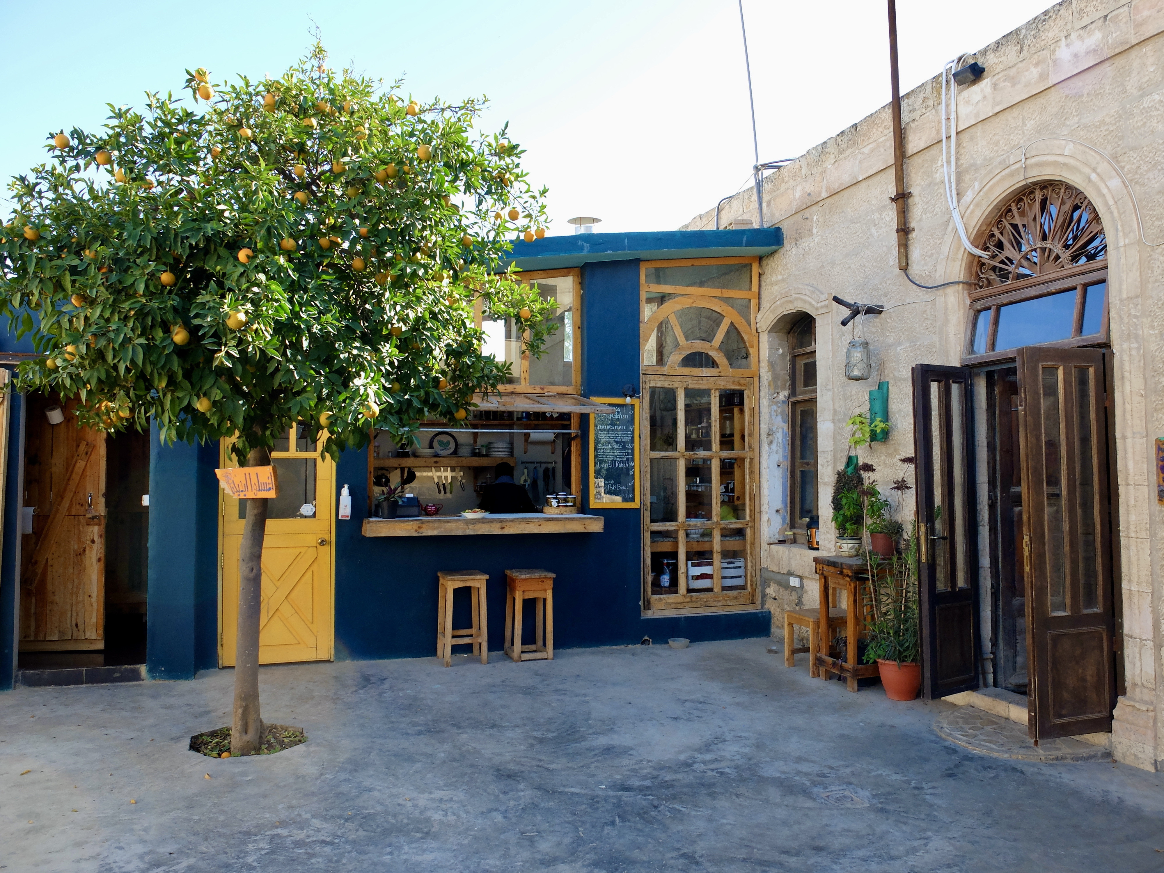 Having had our fill of mosaics (is that even possible?) we realized we also needed to fill our stomachs. Initially, we planned on eating at Haret Jdoudna, a local favorite, set in a restored home. However, it was unclear if the courtyard was open air or contained by windows – we’ll be back post-Covid. Instead, we made our way to Kawon – just the right amount of quirky, this cafe and used bookstore was the perfect fit for us.