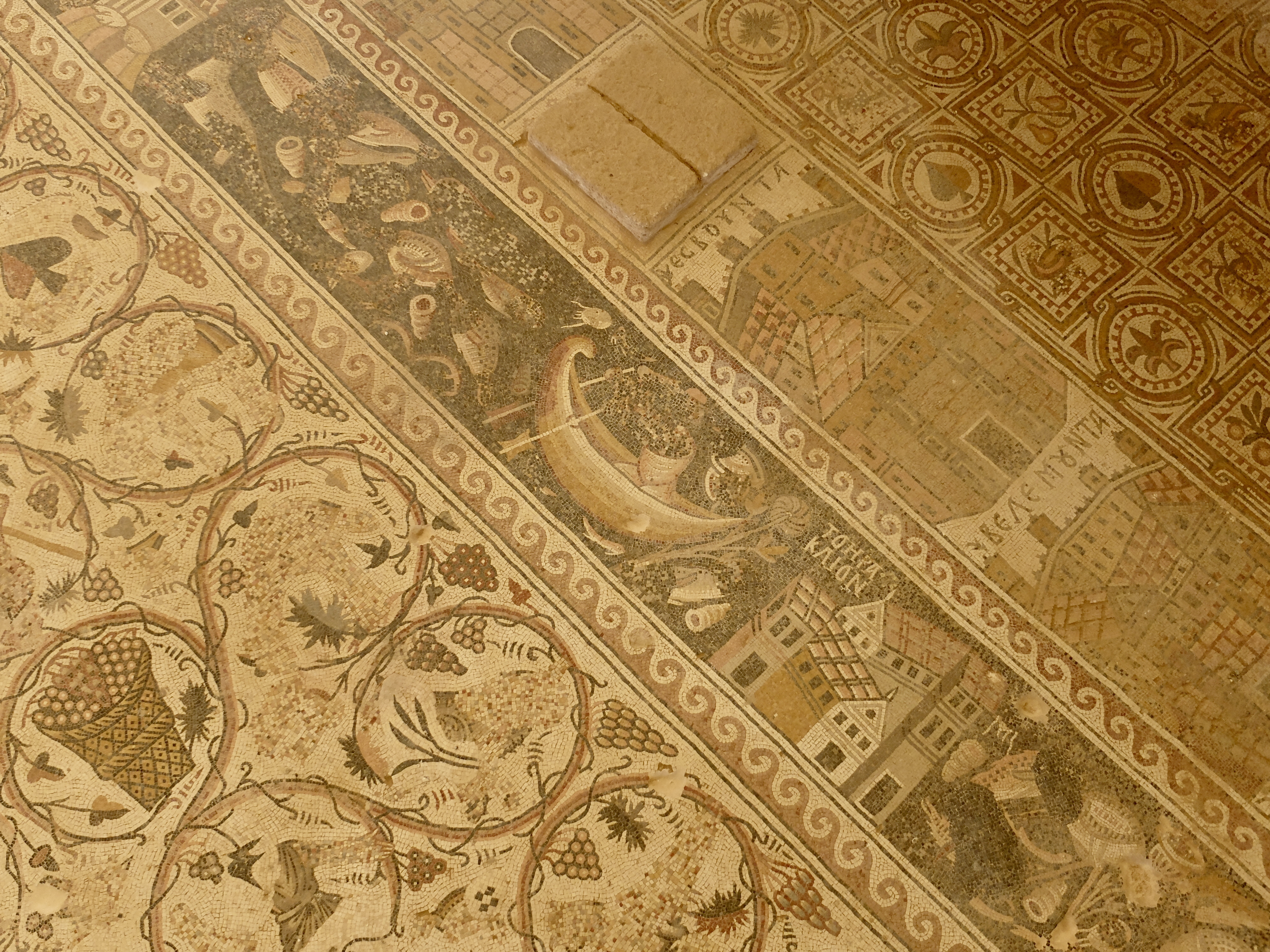 Unfortunately, many of the figures were destroyed and were later filled in with random modern tesserae. Still, the carpet is impressive in design, as well as size – it covers the entire floor of the main chamber.