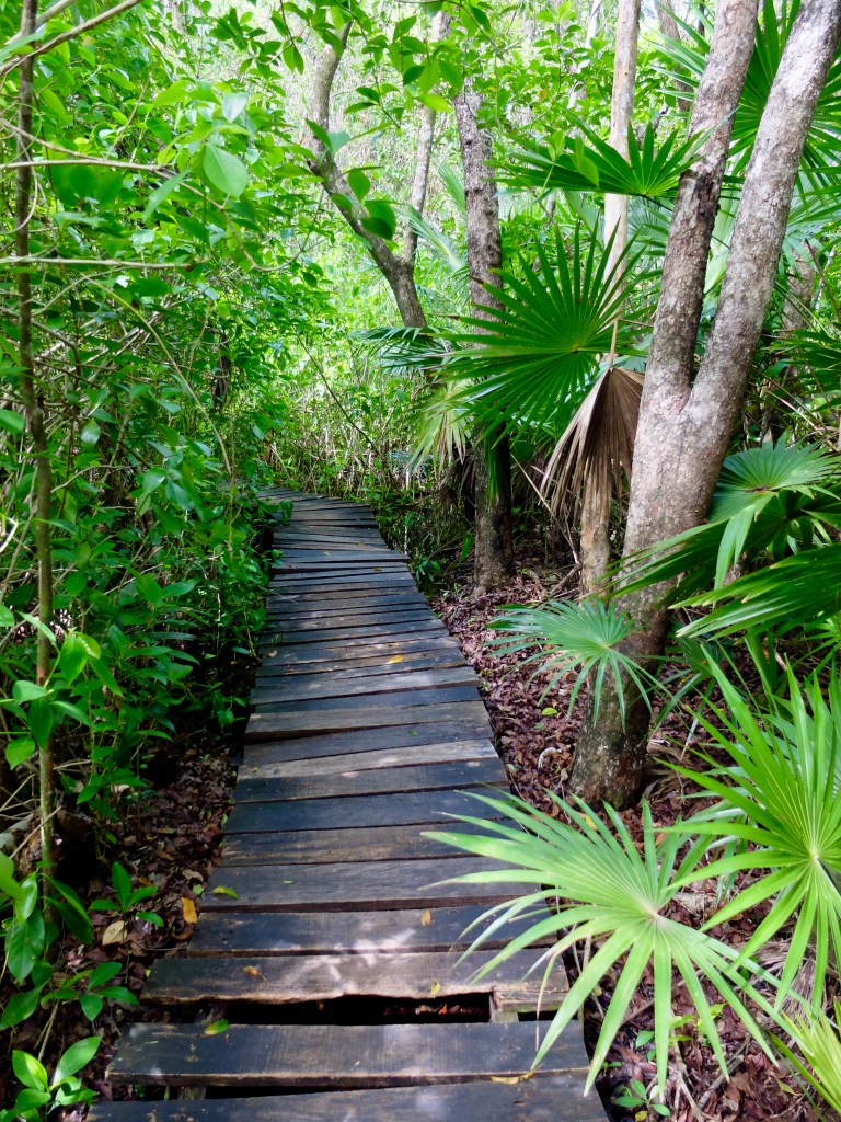 We followed the path to a small guardhouse and paid another 100 pesos to enter the biosphere (or a small section of it, since it covers 528,148 hectares of marine, coastal, and terrestrial ecosystems). The path left land and became a rather rickety dock that took us through marshland.