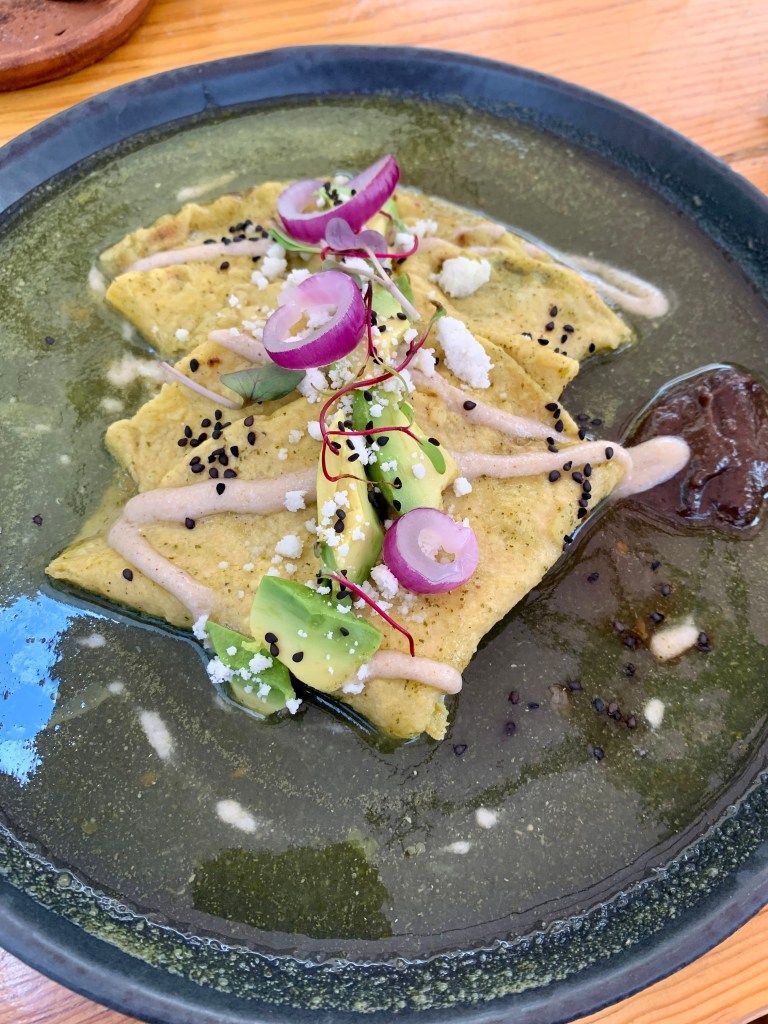 The first time we went, I dove in and started the meal with a Dragón Verde cocktail: Oaxacan cucumber vodka, peppermint, artisanal sparkling water, and toronjil syrup. It was hands-down the most unique cocktail I’ve ever ordered. Everything that followed was delicious: Chichilos, enfrijoladas, enchiladas de hoja santa, Oaxacan chocolate, and more!