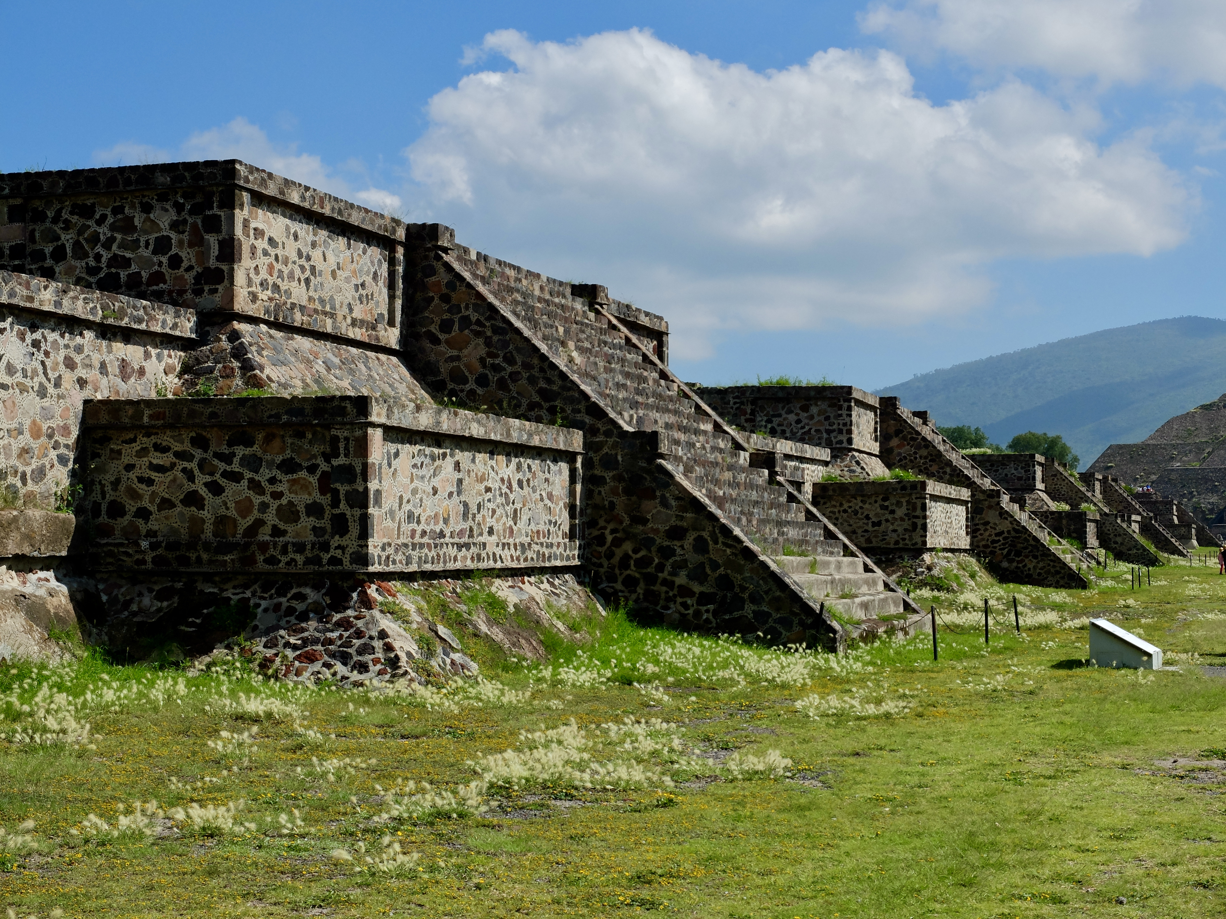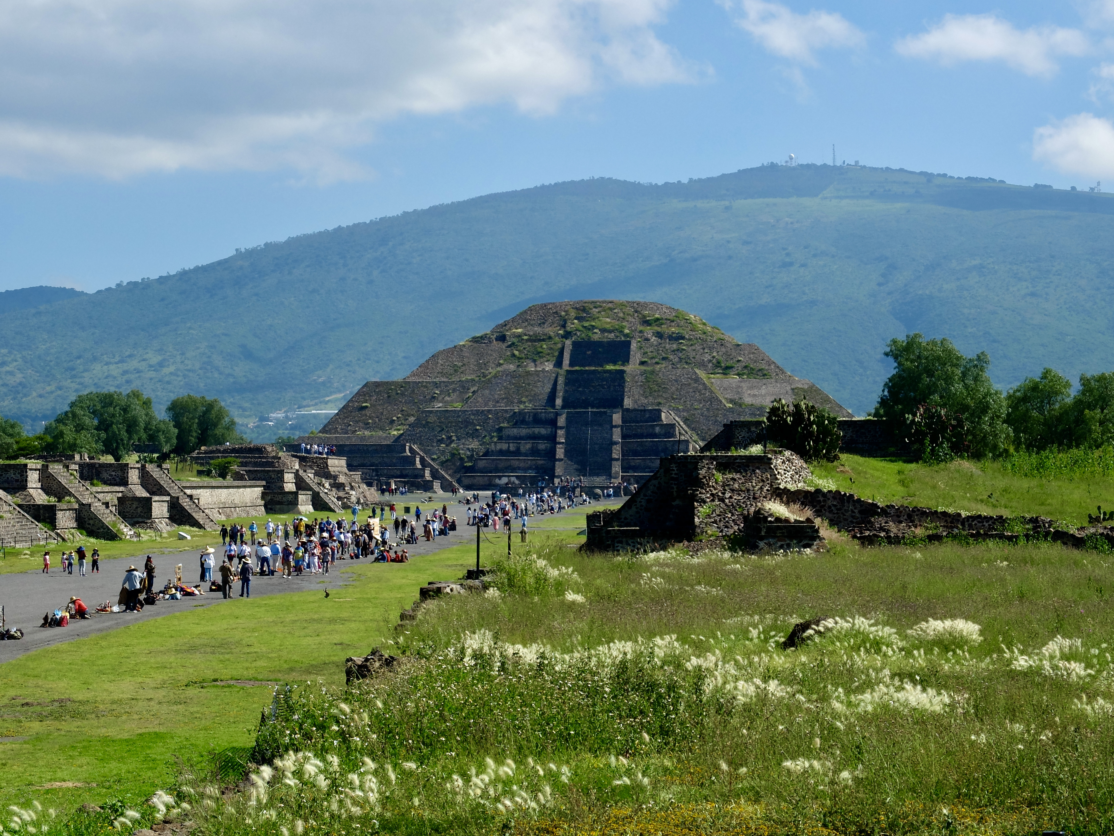 Teotihuacan is an ancient Mesoamerican city which, at its peak, was the largest city in the pre-Columbian Americas. Built between the first and seventh centuries AD, it is well known for several of its monuments: The Temple of Quetzalcoatl, the Pyramids of the Sun (pictured above) & the Moon, the Avenue of the Dead, and its murals.