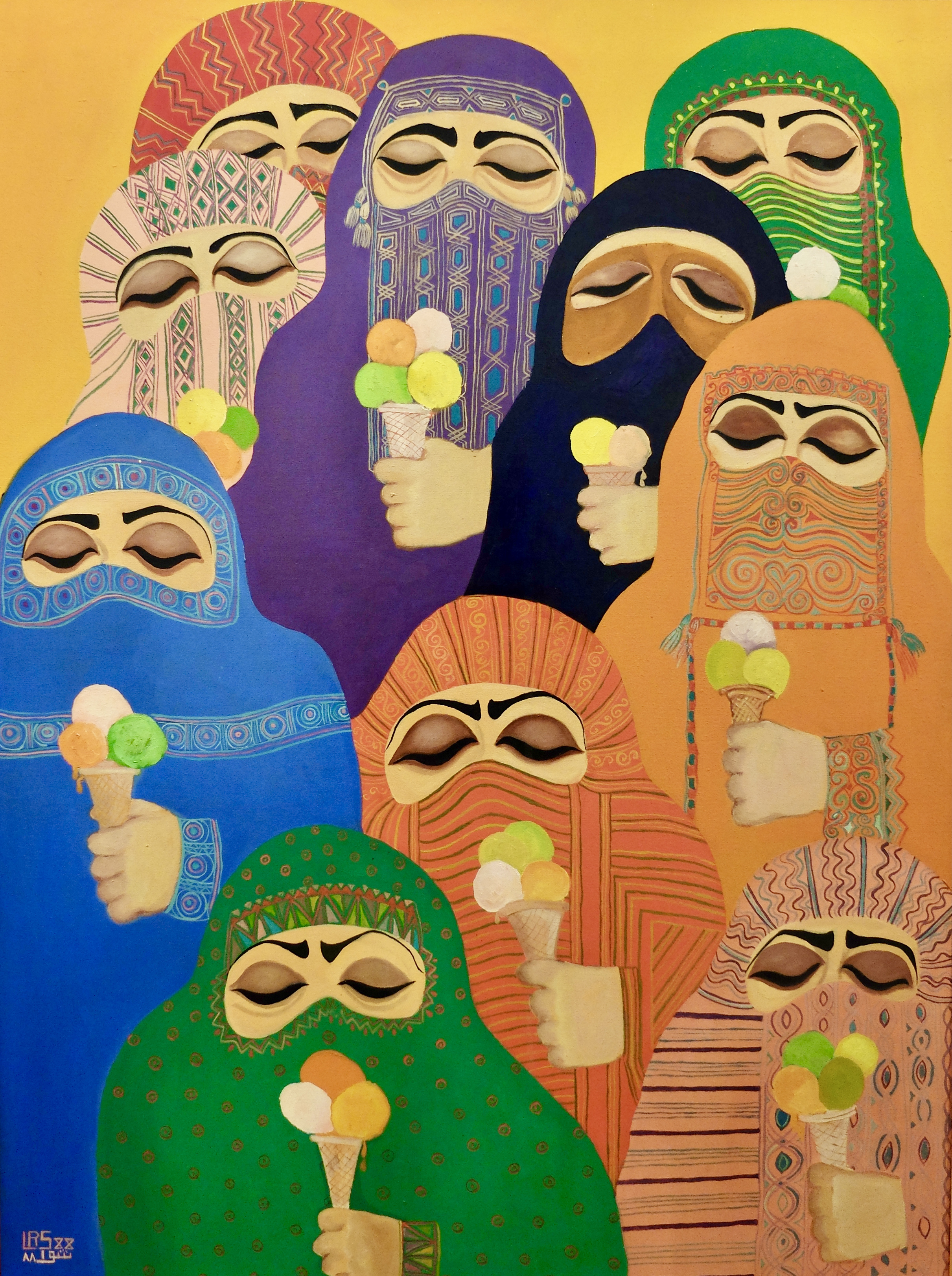 Below are my favorite two pieces, but who knows, maybe that’ll change once we’ve seen the rest. “Impossible Dream” by Laila Shawa [Palestine] and an untitled painting by Omar Bilbeisi