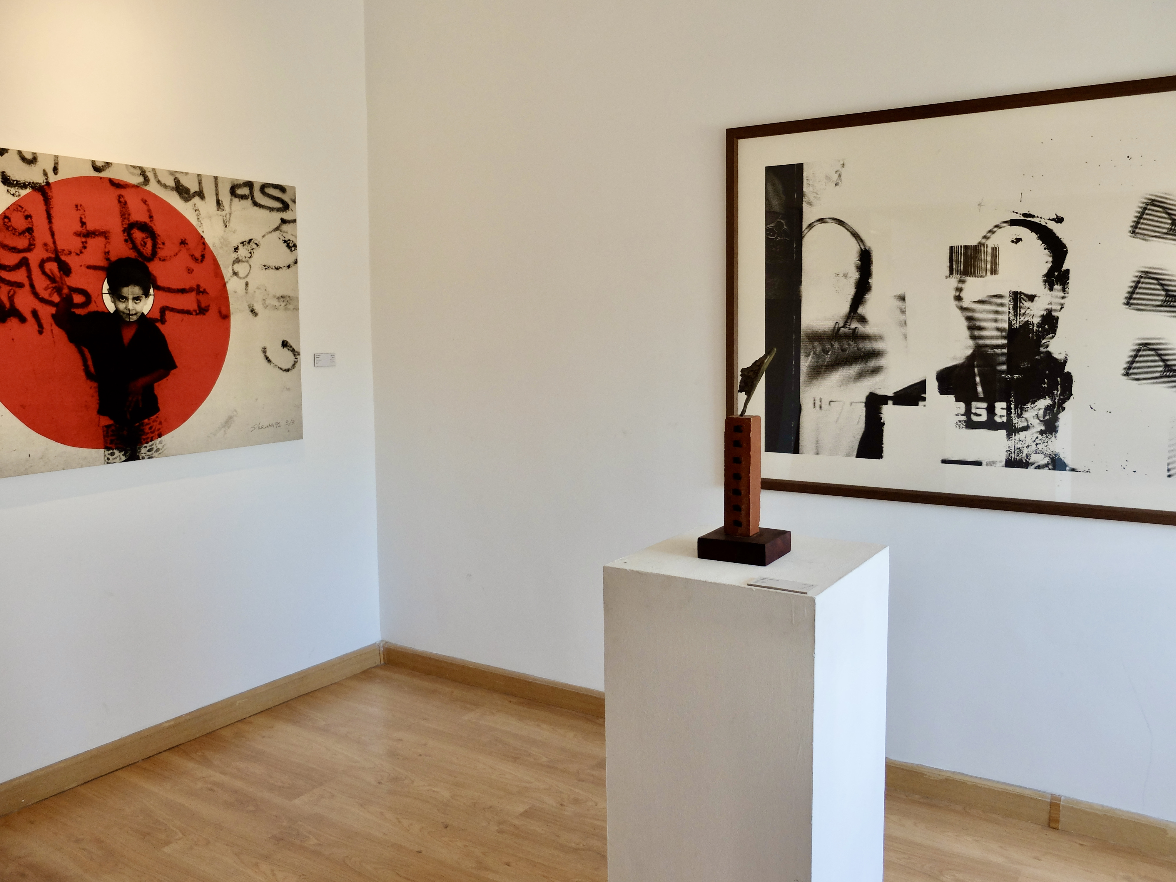 Below from left to right you can see the paintings “Twenty Targets” by Laila Shawa [Palestine] and “Rituals Of the Silence” by Anas Al Sheikh [Bahrain], as well as the untitled sculpture by Khaled Ramadan [Lebanon].