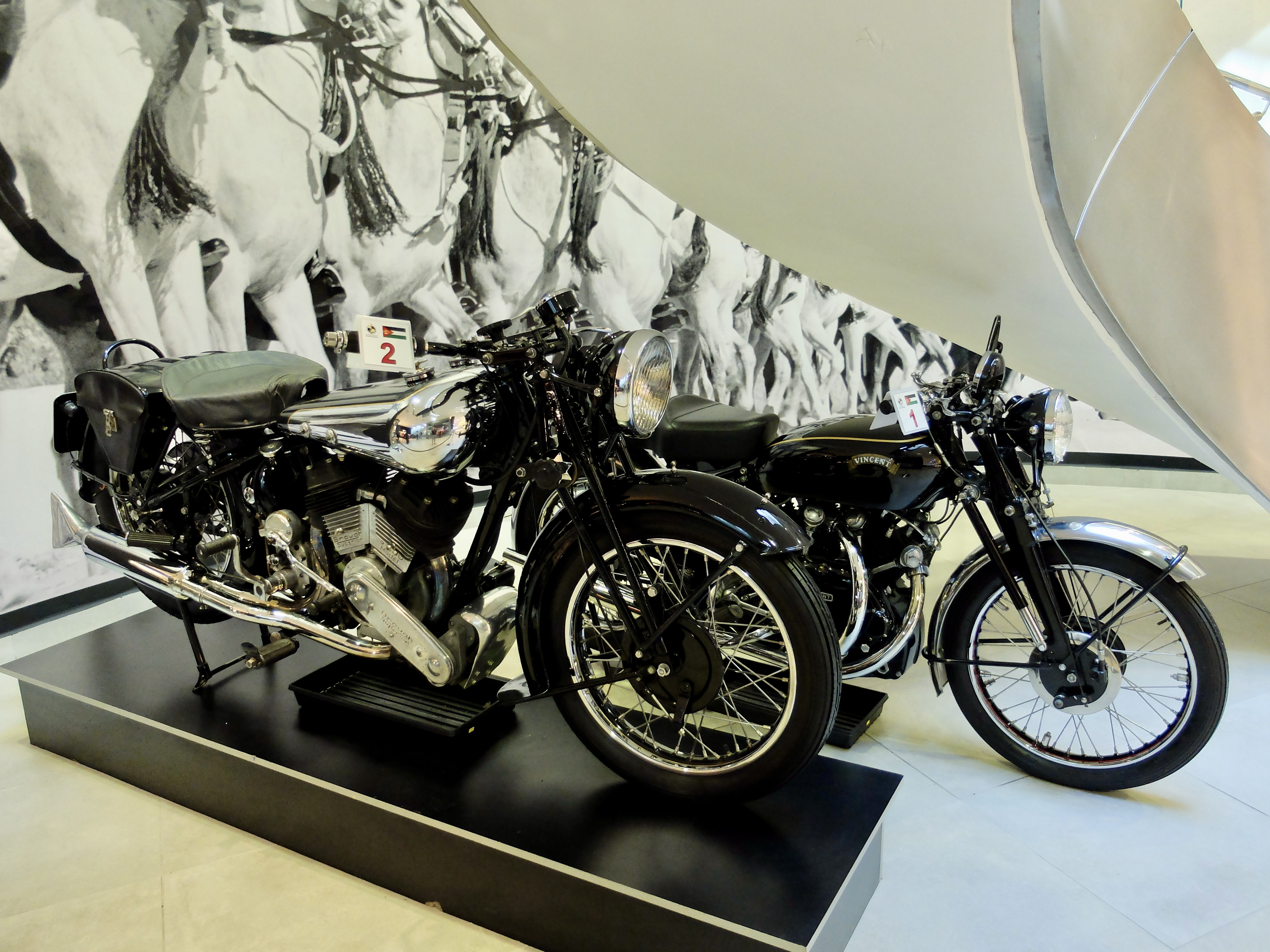 What surprised me were the number of motorcycles on display. Below were two of the first we saw in the museum – a Vincent Black Shadow from 1952 and a Brough Superior from 1936. One of the last things we saw was the 1966 Amphicar – “the car that swims!” As much as I love the concept of a boat/car, I can understand why “this car was too slow for the road (100 km/h) and not very practical in the water (7 knots).” But really, it’s the thought that counts.