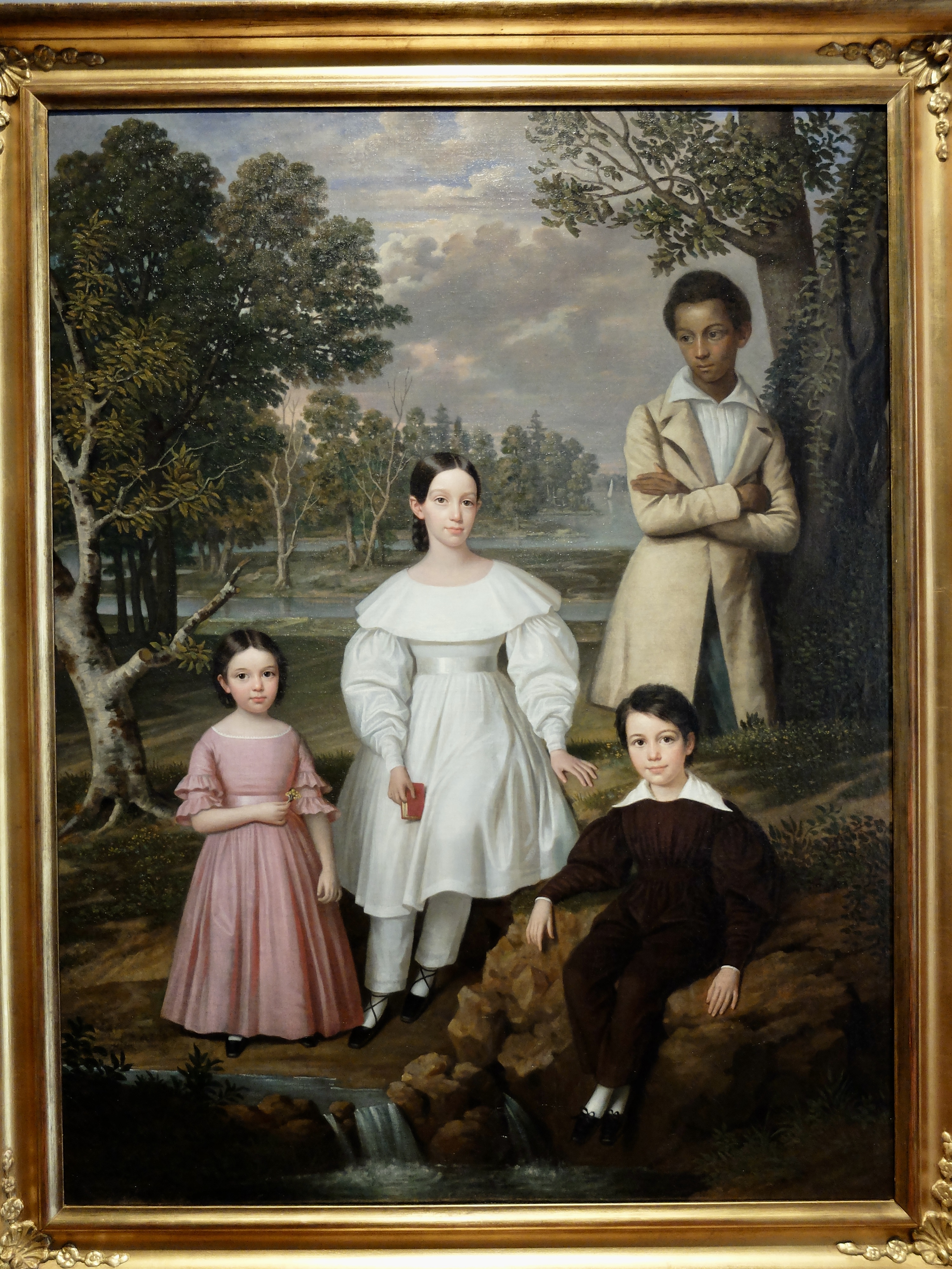 Titled Bélizaire and the Frey Children and attributed to Jacques Guillaume Lucien Amans, it was commissioned in 1837 by Frederick Frey (a wealthy German merchant and banker) and his wife Coralie D’Aunoy Favre (from an elite family rooted in New Orleans since the Colonial era). It depicts their three children, as well as Bélizaire – the 15-year-old enslaved domestic owned by Frederick.