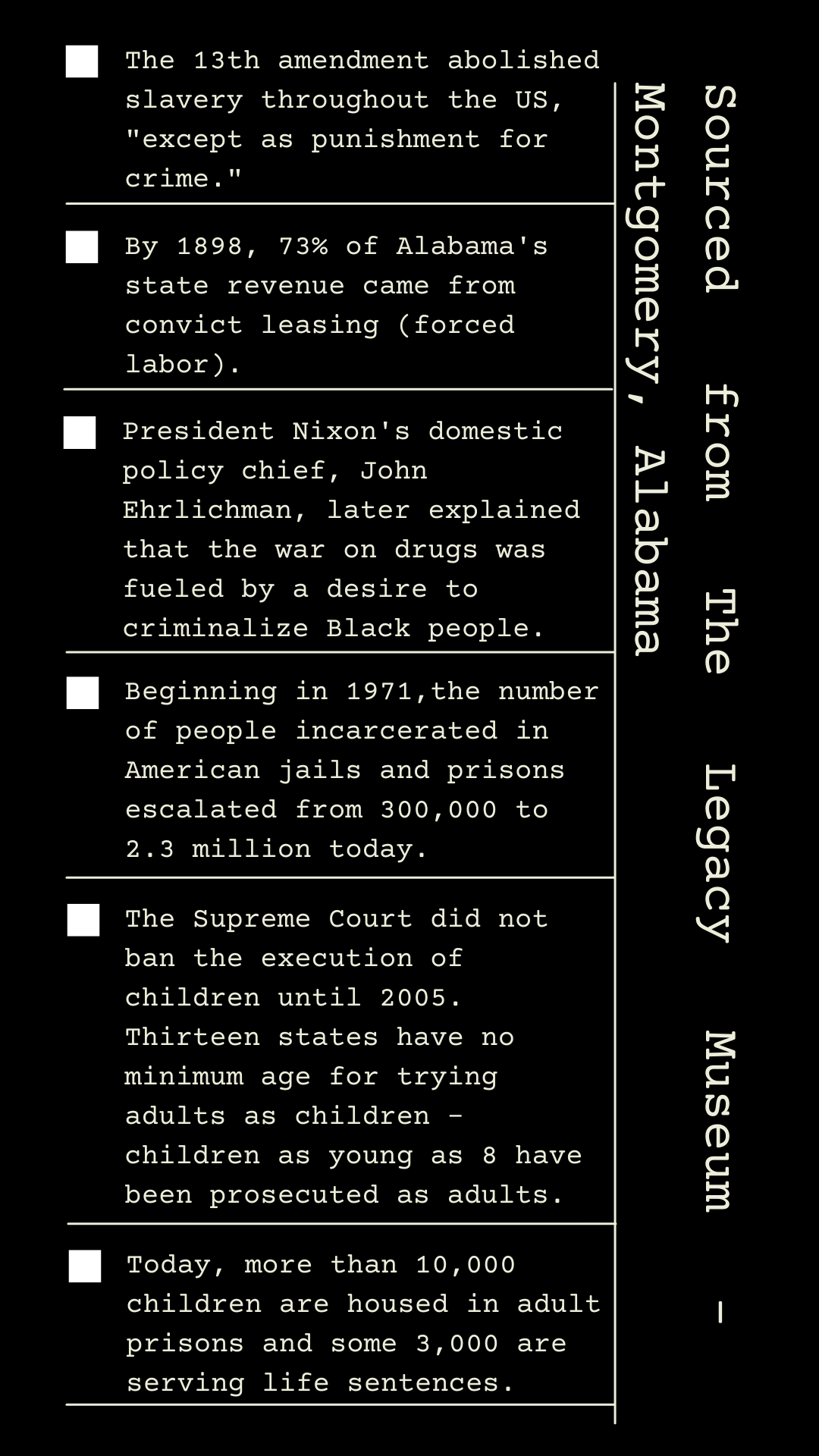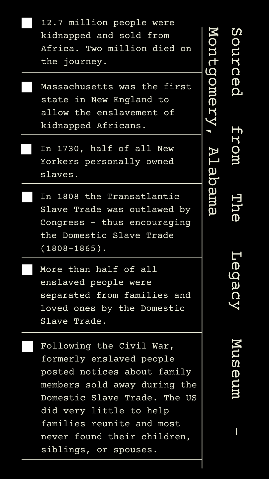 We spent our first afternoon at The Legacy Museum: From Enslavement to Mass Incarceration and I have to say, it is one of the best museums I’ve ever been to. It’s immersive and informative and leaves you with so much to reflect on.