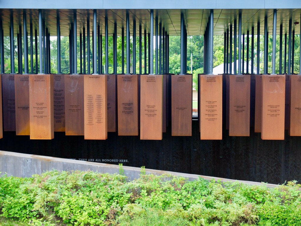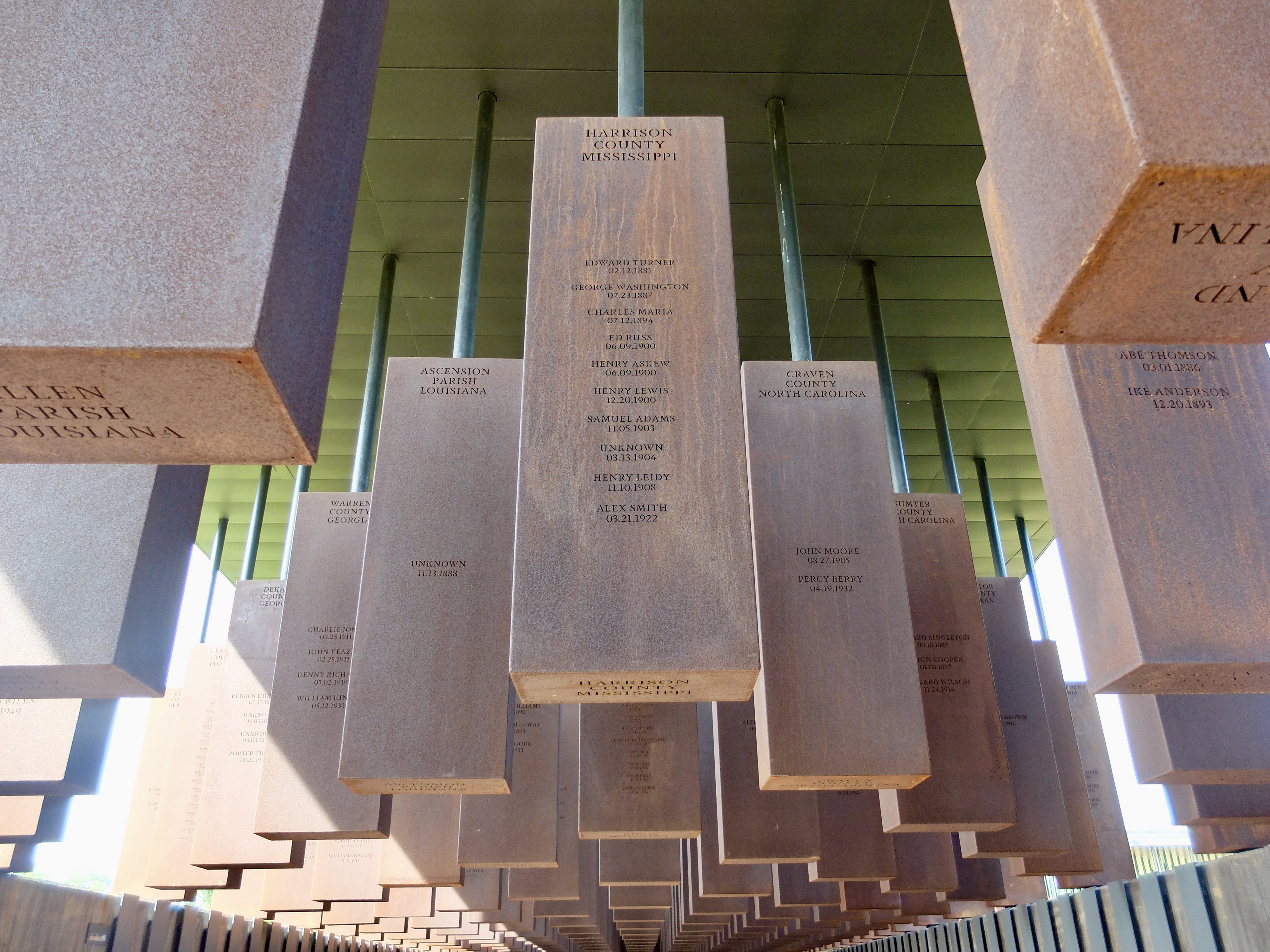 The site includes a memorial square with 800 six-foot monuments to symbolize thousands of racial terror lynching victims in the United States and the counties and states where this terrorism took place. The Equal Justice Initiative has documented nearly 6,500 lynchings of Black people by white mobs across the US between 1865-1950. There are thousands more that will likely never be discovered. Their research is documented in the report Lynching in America: Confronting the Legacy of Racial Terror.