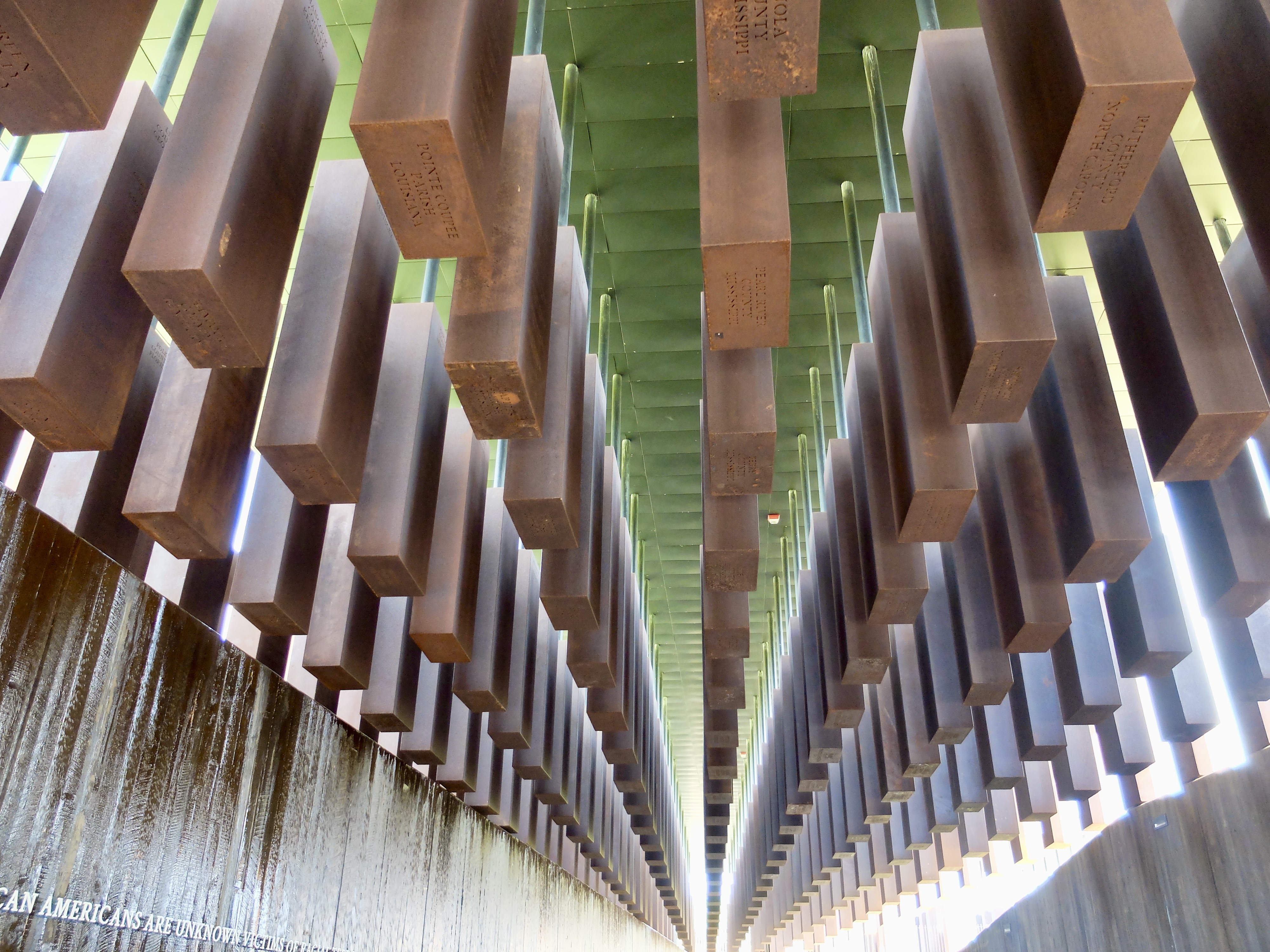 The next morning, we made our way to The National Memorial for Peace and Justice. The admission to this memorial was included in the price of our ticket to the Legacy Museum. This memorial is “the nation’s first memorial dedicated to the legacy of enslaved Black people, people terrorized by lynching, African Americans humiliated by racial segregation and Jim Crow, and people of color burdened with contemporary presumptions of guilt and police violence.”