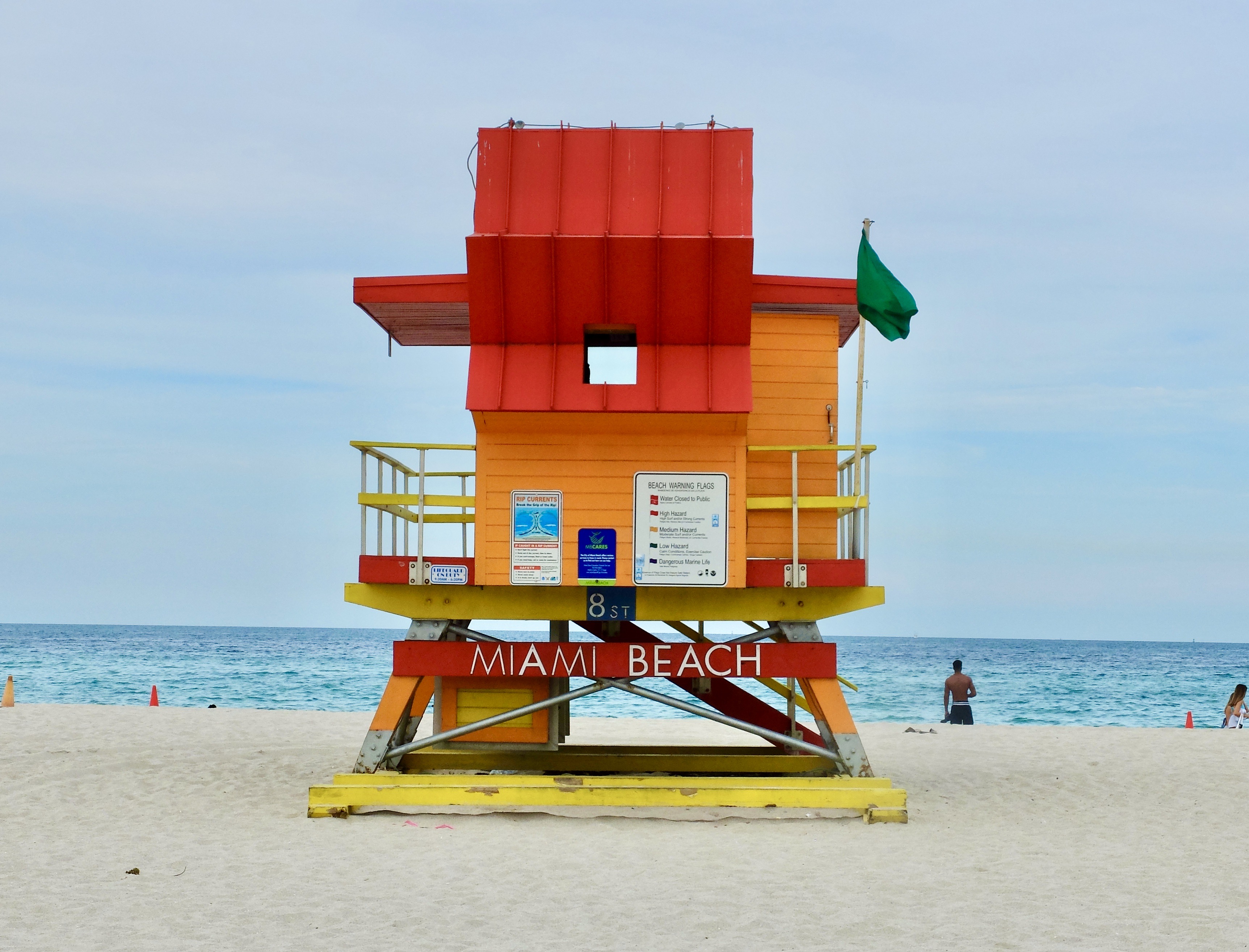 Luckily, we weren’t at the beach to swim, though it was clear that Miami Beach had gone to great lengths to remove it from the sand (nothing you can do about it in the water though!). And from the sand, the water looked lovely, but what really caught my eye on the beach were the lifeguard towers (designed by local architect William Lane). In a perfect world, I would have walked the length of the beach, photographing every single one of them, but I was running out of light and camera battery, so I got photos of three of them at 5th, 6th, and 8th Street.