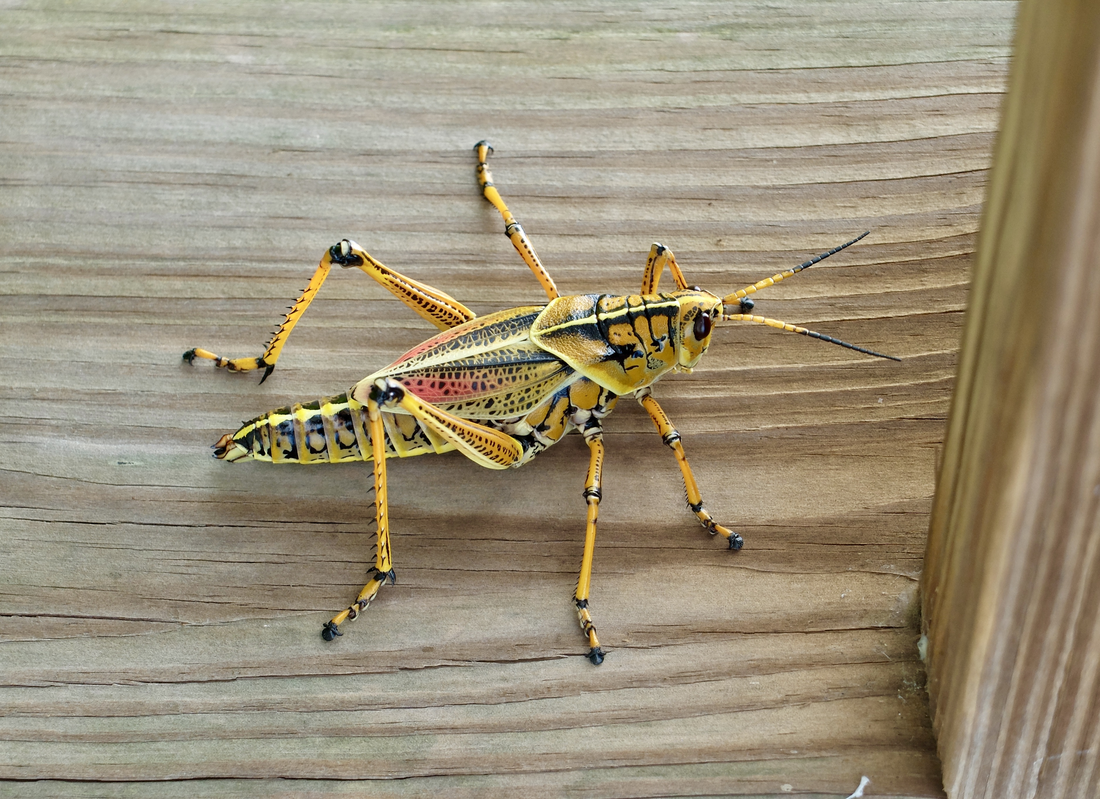 Our first trip was an hour SW and took us to the Anhinga Trail and Gumbo-Limbo Trail (just over 1.2 miles combined). Half of the path was paved, while the other half consisted of a curved wooden bridge. We saw birds, turtles, fish, and an alligator, but my favorite animal surprised even me: Grasshoppers. These grasshoppers felt pre-historically large, and some were unusually friendly.
