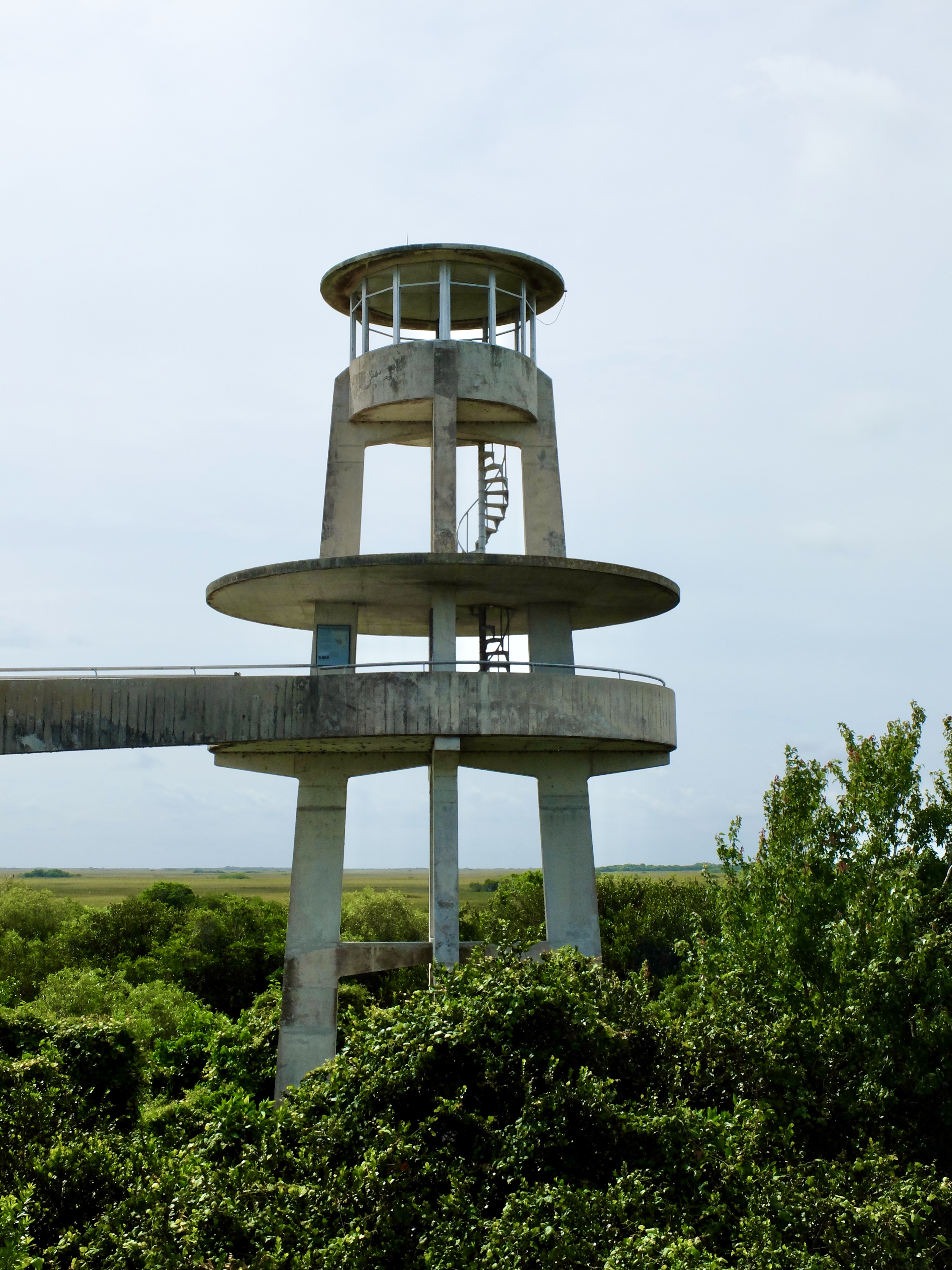 Midway on the trail is the Shark Valley Observation Tower, which is the highest accessible point in Everglades National Park. It has an awesome futuristic/apocalypse vibe that provides 20-mile panoramic views of the park. Made of concrete, the walk up is hot, but views and breeze from the top are worth it.