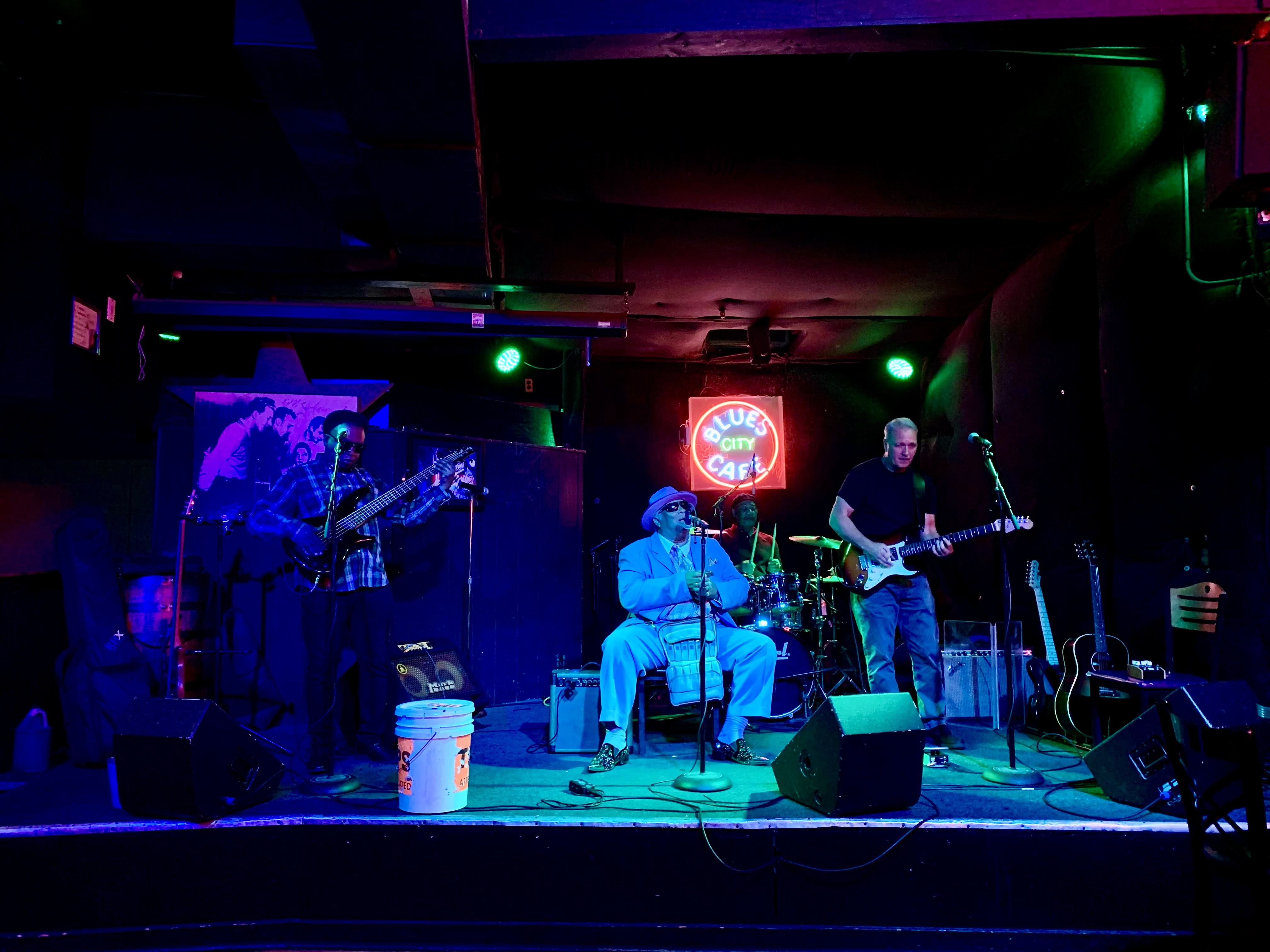 We decided to spend the evening in B.B. King’s Blues Club and listen to The Memphis Royals. We got a pro tip later on that if you arrive early, you can eat dinner up in the balcony and it’s a great place to watch the show later that evening. I can’t imagine their menu had a lot on offer for two vegetarians, but we got great seats down on the floor.