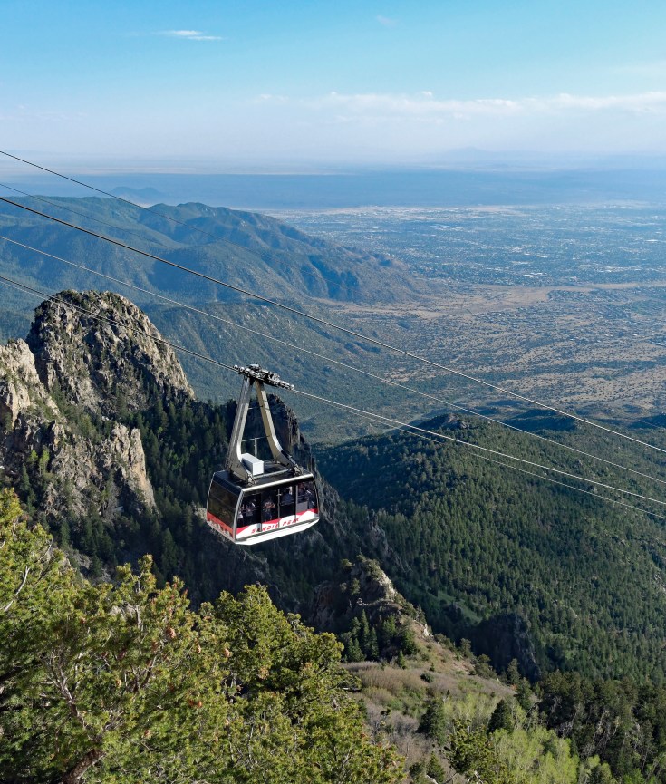 Finally it was time for the Sandia Peak Tramway. It had been a bit cloudy earlier in the day, but that had given way to blue skies and lovely weather as we took the tram up to Sandia Peak. At $38 a ticket, it was a bit pricier than a lot of our road trip activities this summer (our National Parks pass was only $80 for the entire year – a sick deal!), but 100% worth it. Sandia Peak Tramway was the longest tram in the world from 1966-2010, until the Wings of Tatev was built in Armenia.
