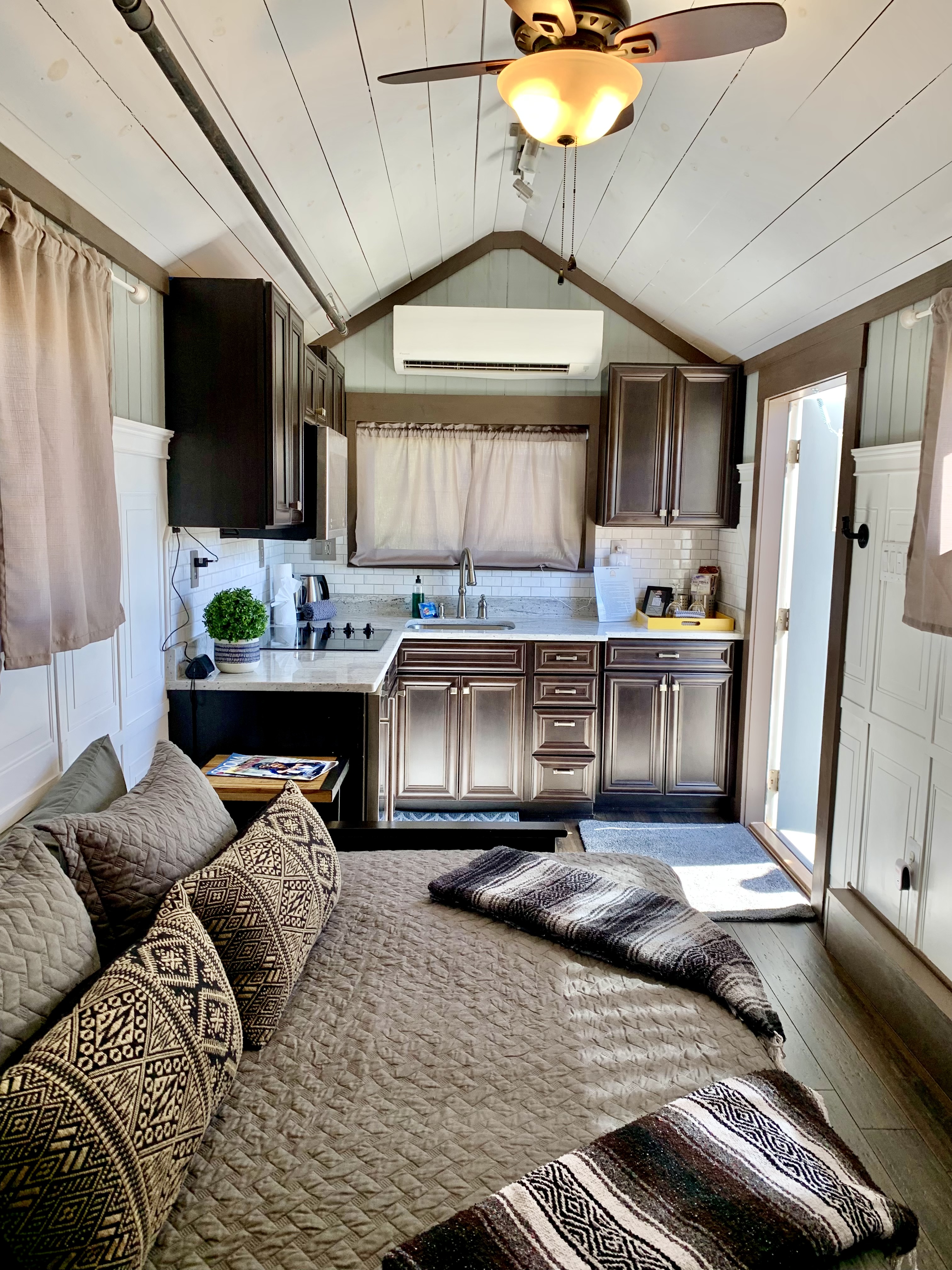 Our first surprise of Sedona – we didn’t actually want to stay in Sedona! Because the hiking around the area is so well known, the hotel rates in the area are pretty out of control. We found a company renting tiny houses – Tiny Camp – and saw that they had more affordable options in nearby Cottonwood, which is how we ended up in the adorable tiny house below.