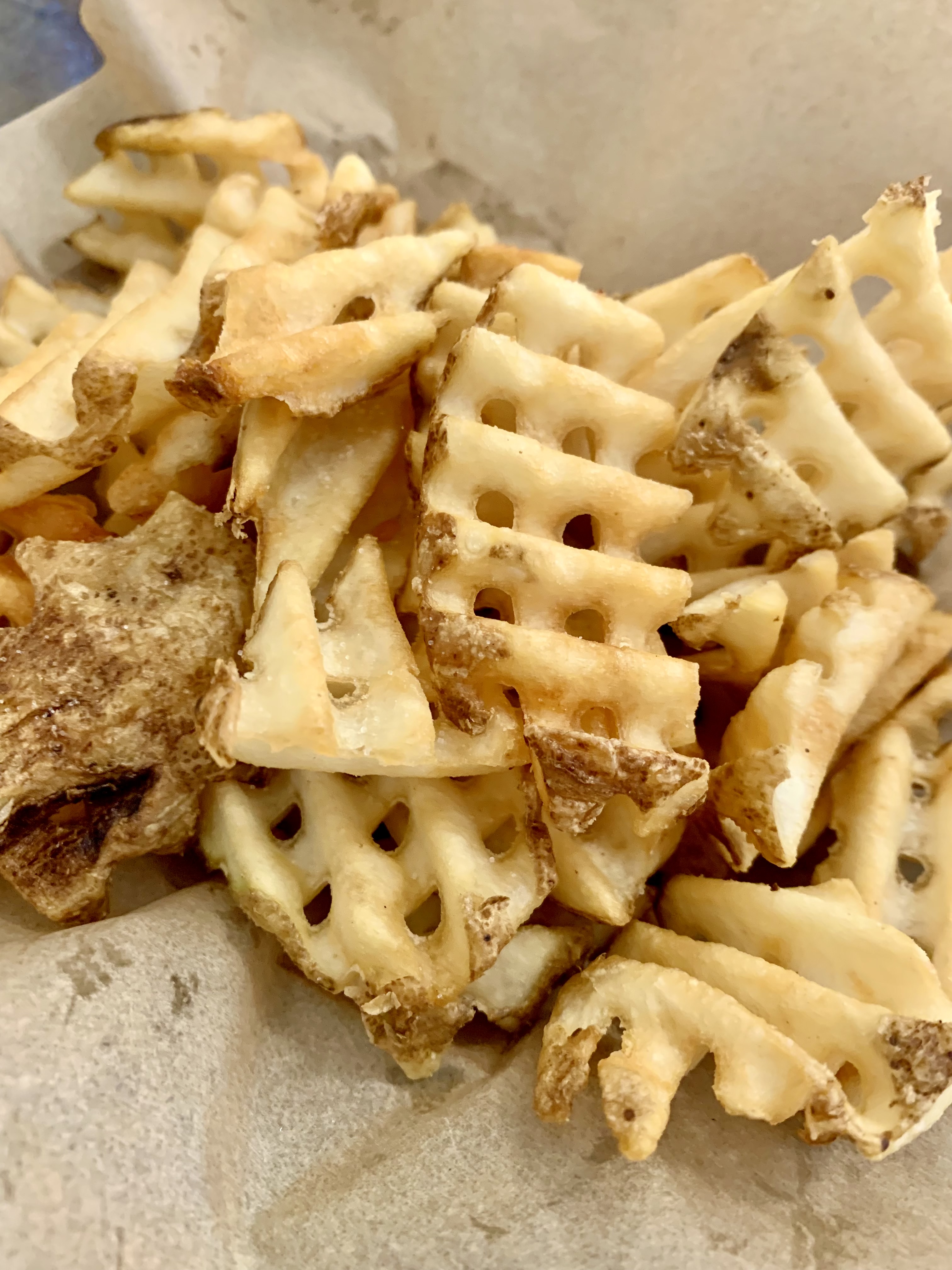 As we drove out of the park, we made plans for the rest of our day. We’d head back to West Yellowstone, pick up our bags, and drive back to Salt Lake City with a stop in Idaho for lunch. Why Idaho? Because the city of Blackfoot is home of the Idaho Potato Museum & Potato Station Cafe. The museum itself seemed more geared to kids and we didn’t purchase tickets. What did we purchase? Tater tots, home fries, and waffle fries. A veritable fried feast.