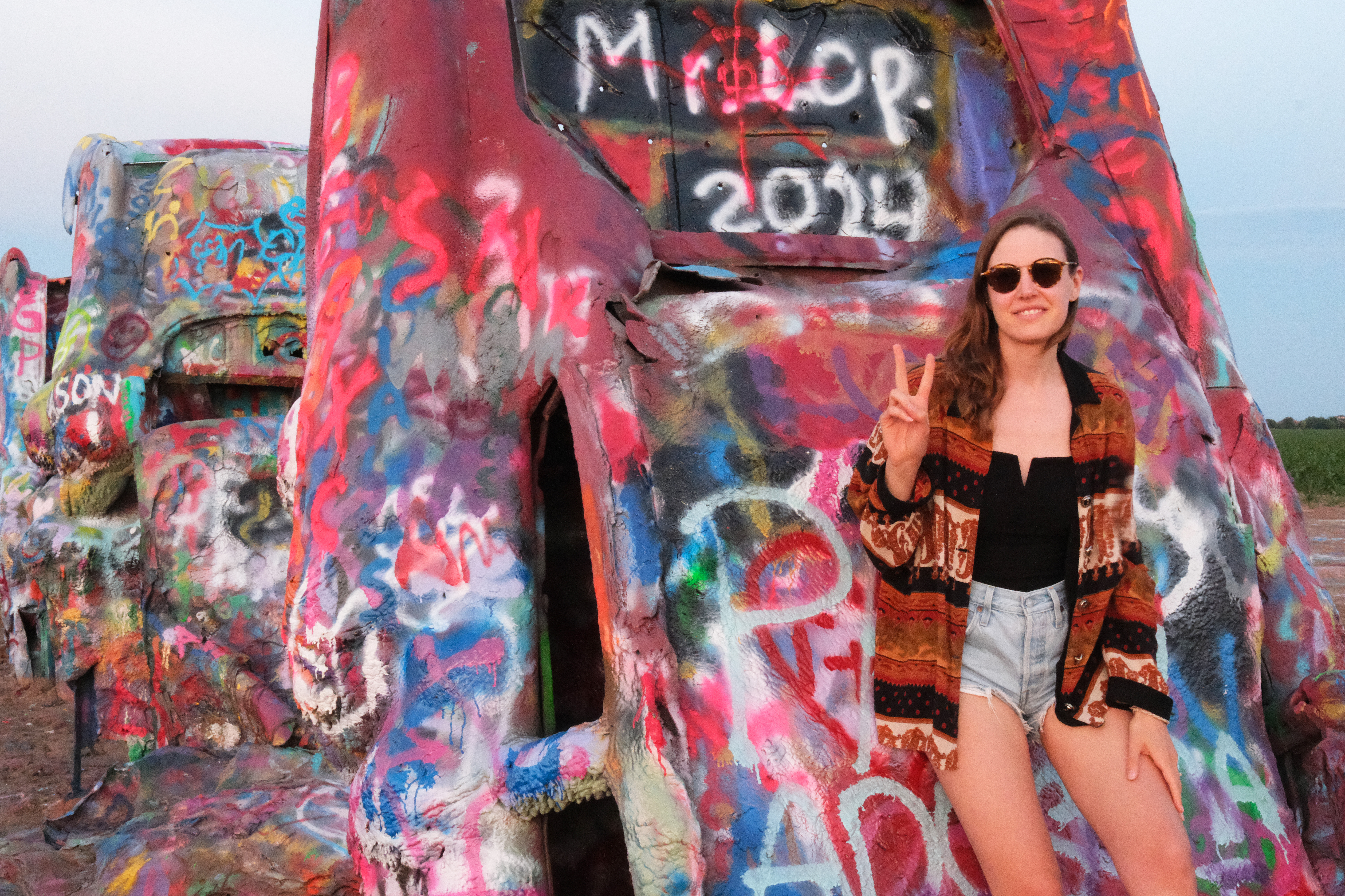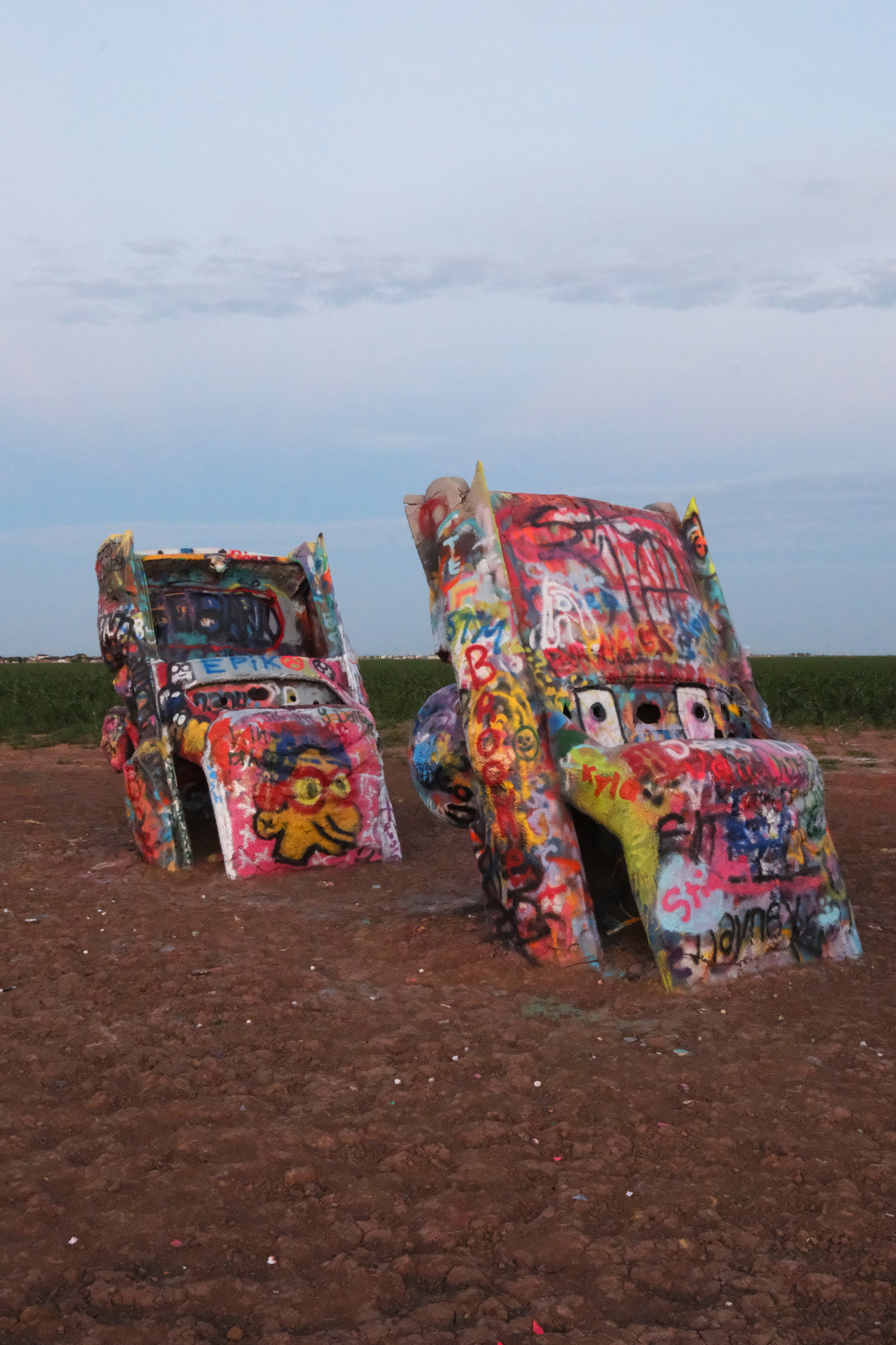 But before getting to the hotel in Amarillo, we made our way to Cadillac Ranch just after sunset. We didn’t have light for very long, but this roadside attraction was still a fun stop. There are 10 Cadillacs buried nose-down, apparently at the same angle as the pyramids of Giza (no, I do not know why). What I do know is that it’s been around since 1974 and since Cadillac has always been the car brand of choice for my mother’s parents, it felt like a necessary thing to view.