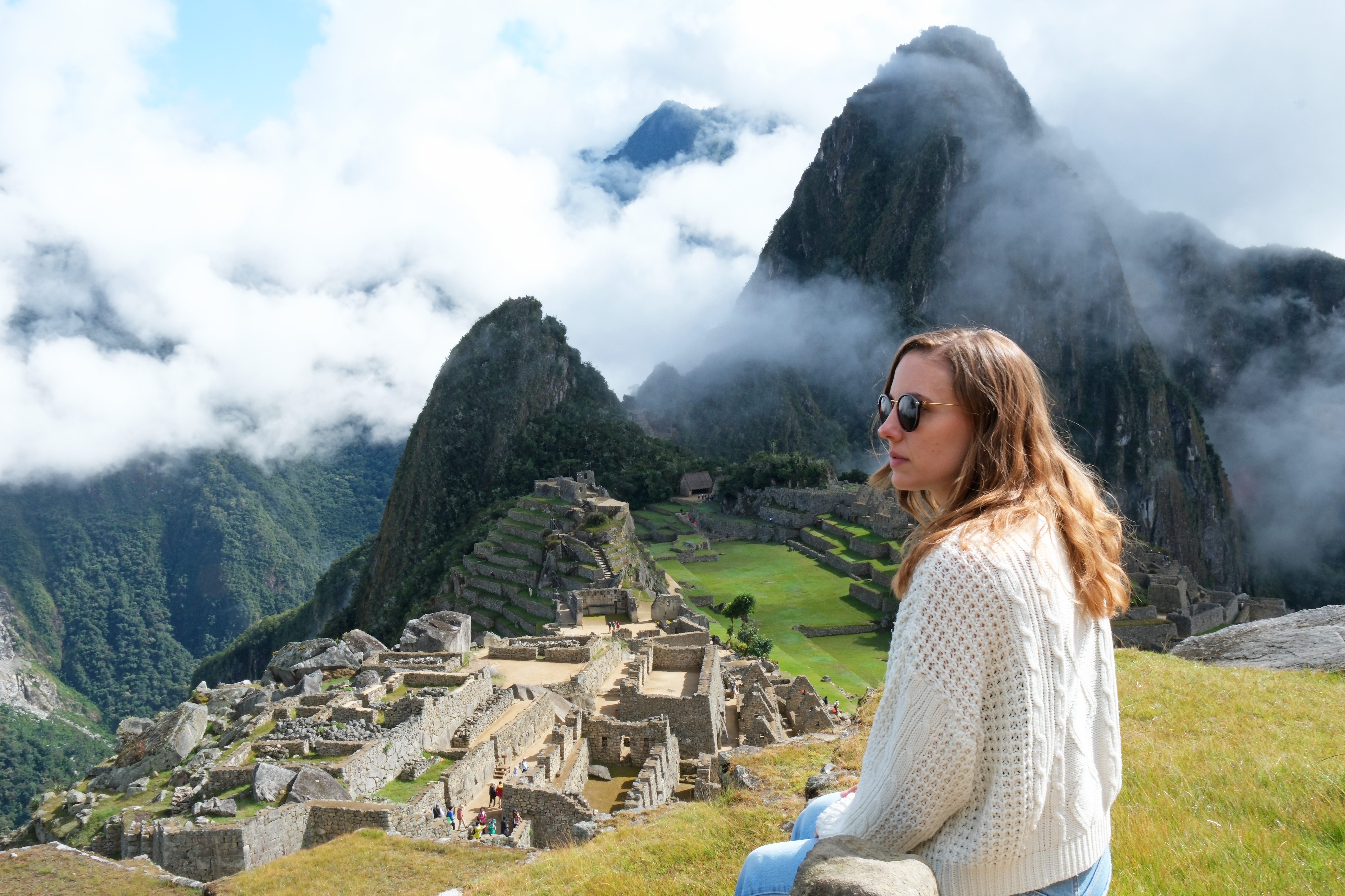 In the meantime, I was still trying to figure out where to get a photo of me + Machu Picchu. We chose to move down and to the left (whereas the staircase into the ruins goes right). It wasn’t what I had previously imagined, but after a morning of fog, it more than exceeded my expectations!