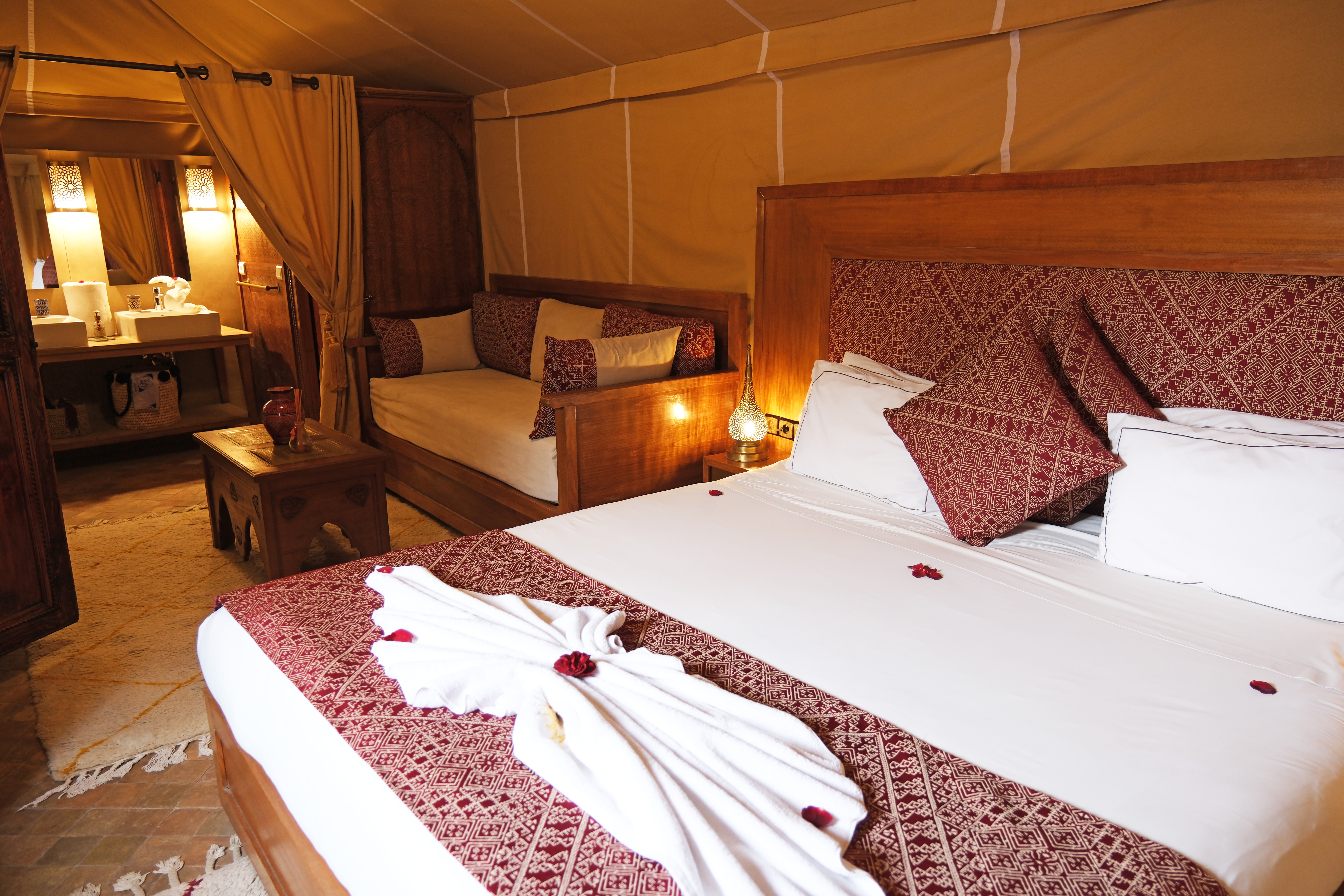 Our room at Riad Melhoun managed to strike the perfect balance, offering the privacy that riads can sometimes lack. Located on the rooftop, it was a spacious Berber-style suite designed to feel like a traditional tent. The size alone made it stand out from the other rooms, but what truly set it apart was its semi-secluded location. Unless other guests ventured up to the rooftop, we often had the space to ourselves. To top it all off, the roof also had a heated pool and colorful seating area that felt like they were just for us.