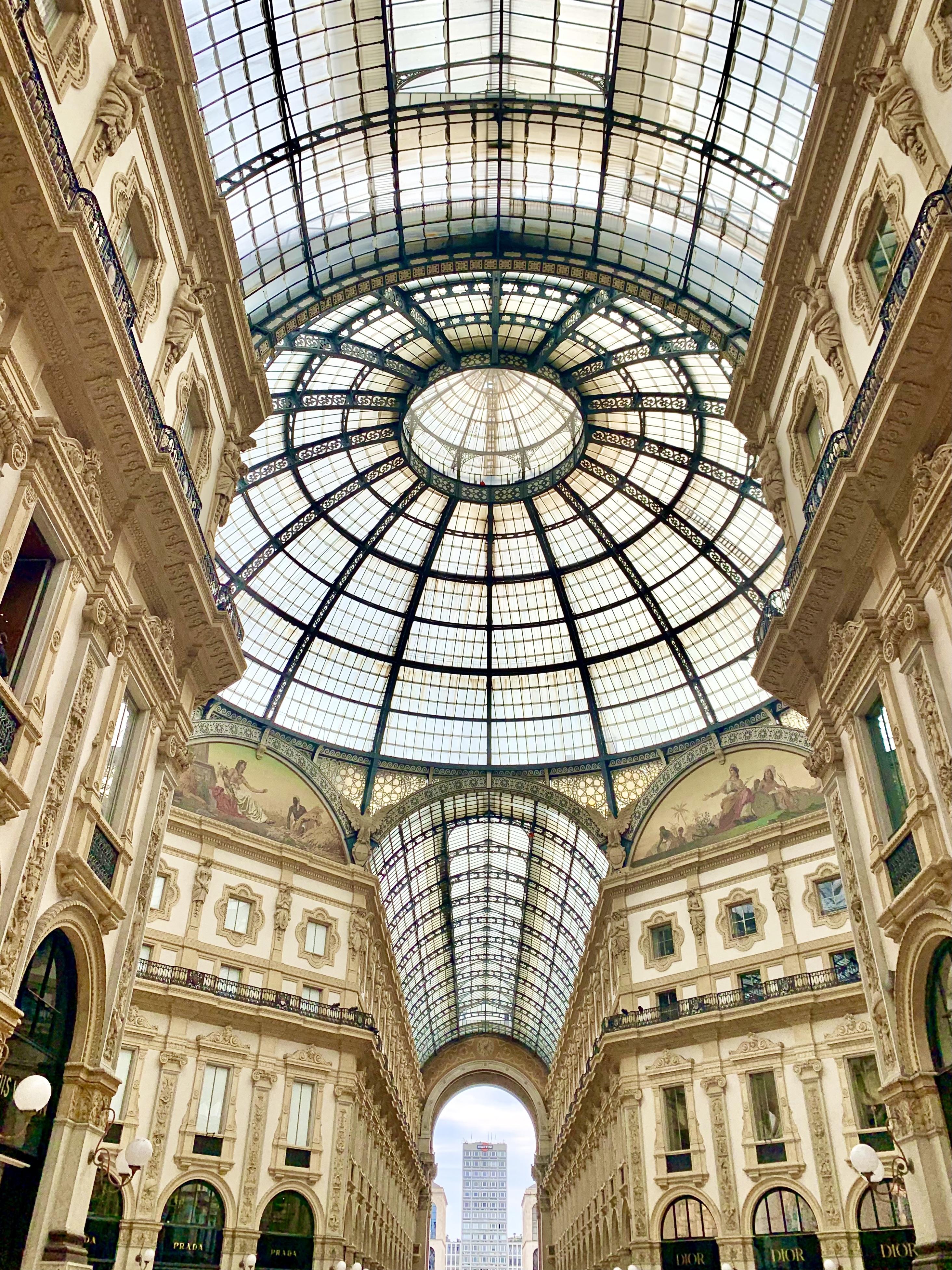 Just steps away, Galleria Vittorio Emanuele II rises like another cathedral – but one dedicated to fashion. Built in the late 19th century, and named after Italy’s first king, it connects the Duomo to the La Scala opera house. Its soaring iron-and-glass dome feels as grand as any museum, with intricate mosaic floors beneath your feet and light filtering in from above. Plus, more selfies than we’ve seen just about anywhere outside a US National Park! Not that we didn’t snap some photos and window shop with everyone else.