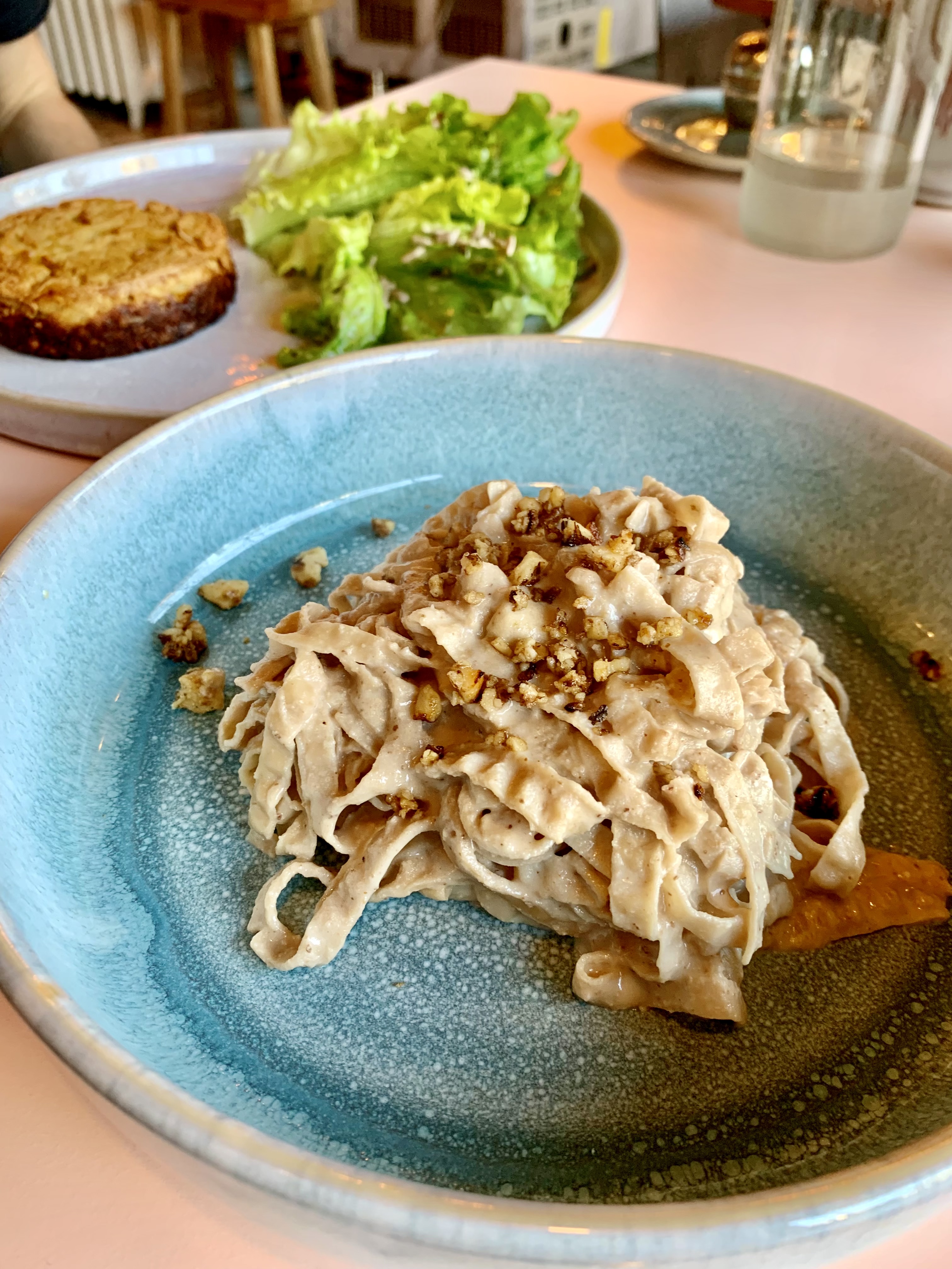 Il Lughino and La Colubrina were the most traditional vegan restaurants we went to. Il Lughino’s menu was incredibly hearty and we feasted on quiche, lettuce lasagna (I promise it was good!), fusilli, and seitan steak. At La Colubrina we ate pumpkin risotto, a fascinating carbonara, and olive & caper pizza – their vegan cheese wasn’t bad.