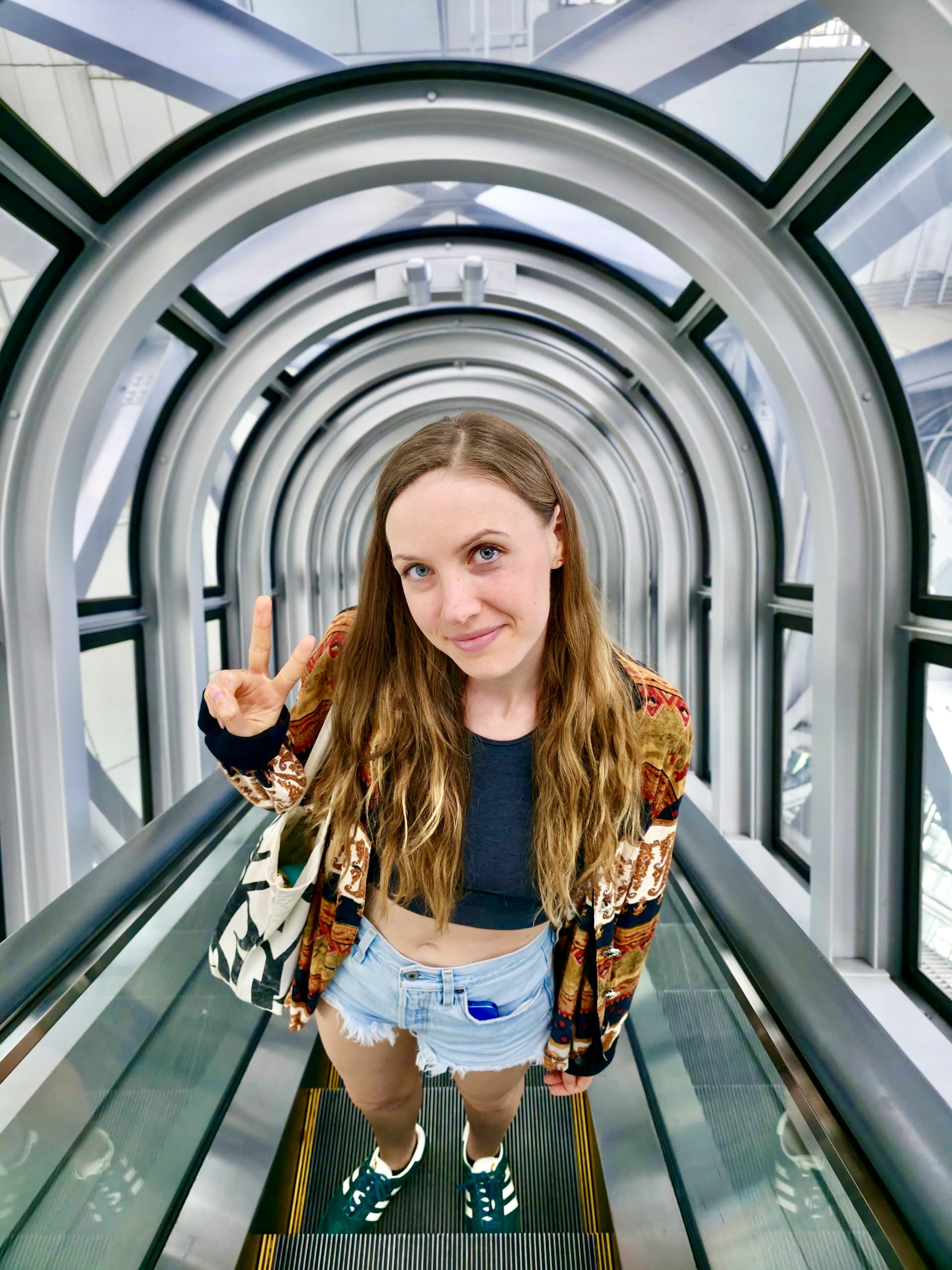 Another Osaka landmark we sought out was the Umeda Sky Building. We went on a day when the weather was turning – we tried to beat the rain and managed to get some beautiful views before the storm arrived. We didn’t make it all the way to the open-air top, but we spent a lot of time inside instead, learning about the building and watching the city change below us.