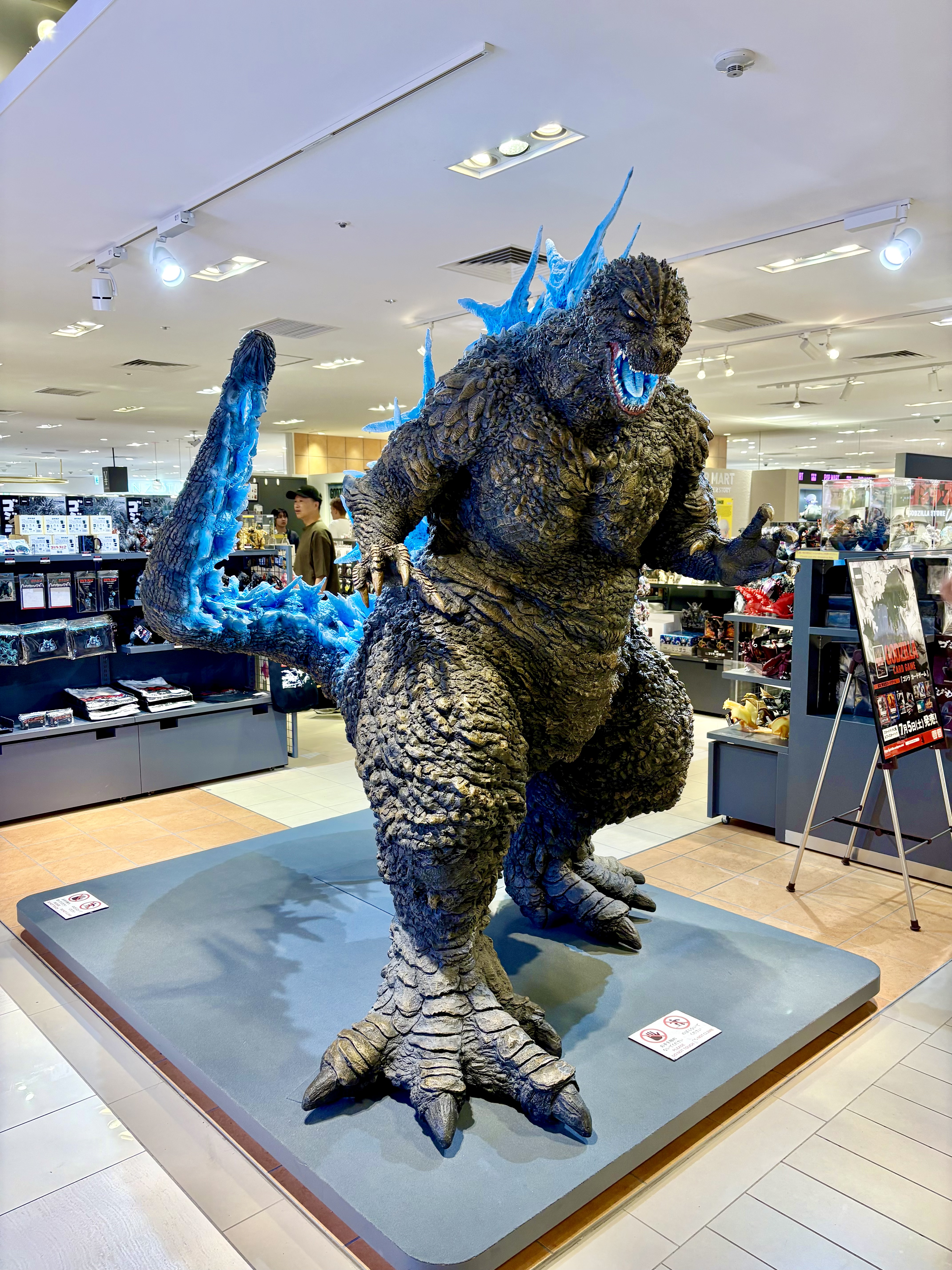 Floor by floor, it became a greatest-hits tour of pop culture. A Pokémon Center, perfect since we were determined to visit each of them, a Pokémon Cafe – didn’t know those even existed, a Jump Shop for my One Piece obsession, a Studio Ghibli shop with a Spirited Away photo op that was impossible to resist, a Snoopy store that brought me straight back to my childhood in Minnesota, and, of course, a Godzilla store. Mall culture is very much alive in Japan – nostalgic, curated, and unapologetically joyful.