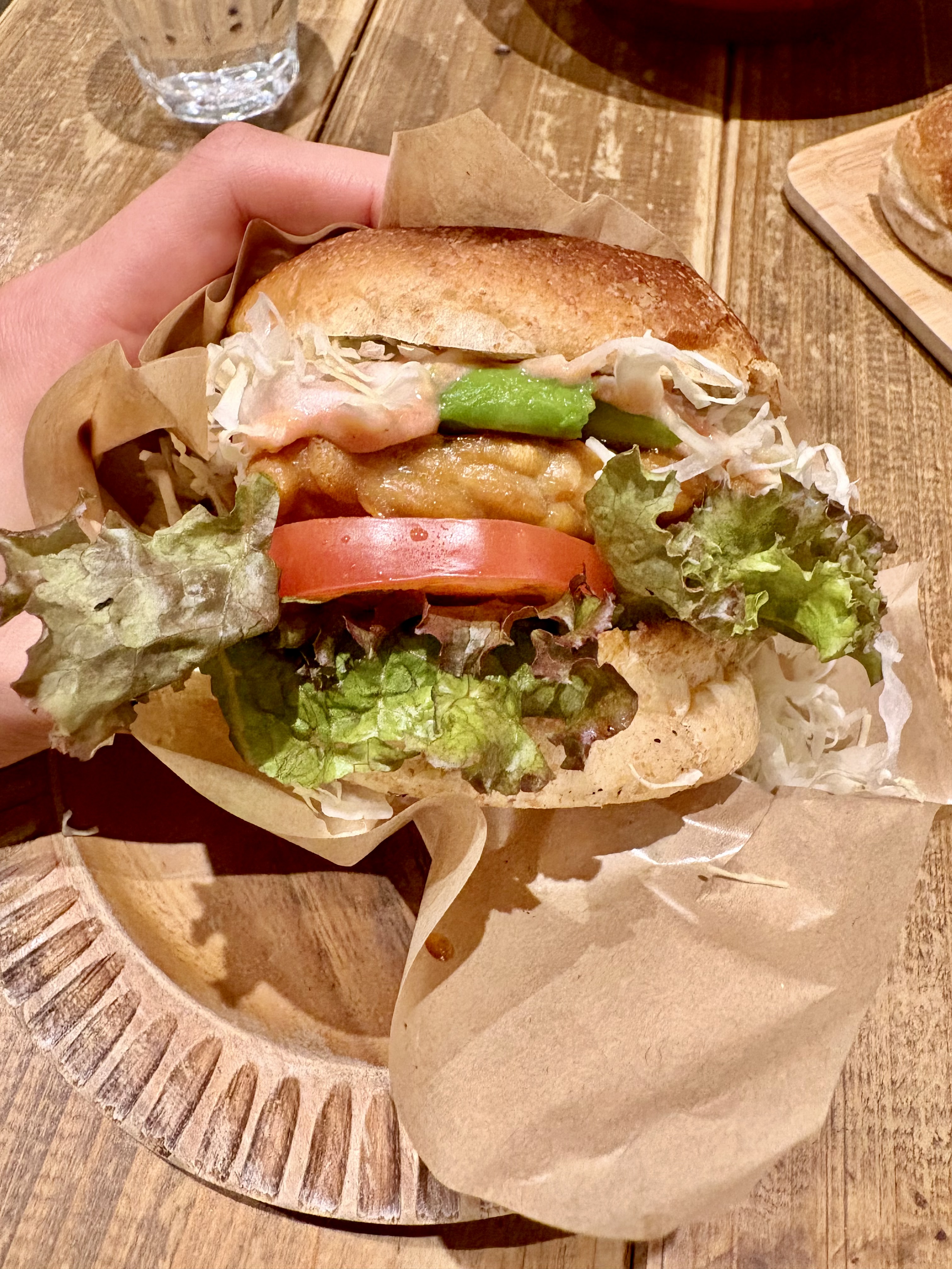 Folk Saka had truly amazing sandwiches (photographed below). Run by a friendly Scottish and American couple, we got to gush about how much the four of us are obsessed with Japan and why they chose to settle in Osaka. Green Earth had humorously terrible ambiance, but the meal was incredible, fresh, and healthy – not always easy to find in Japan!