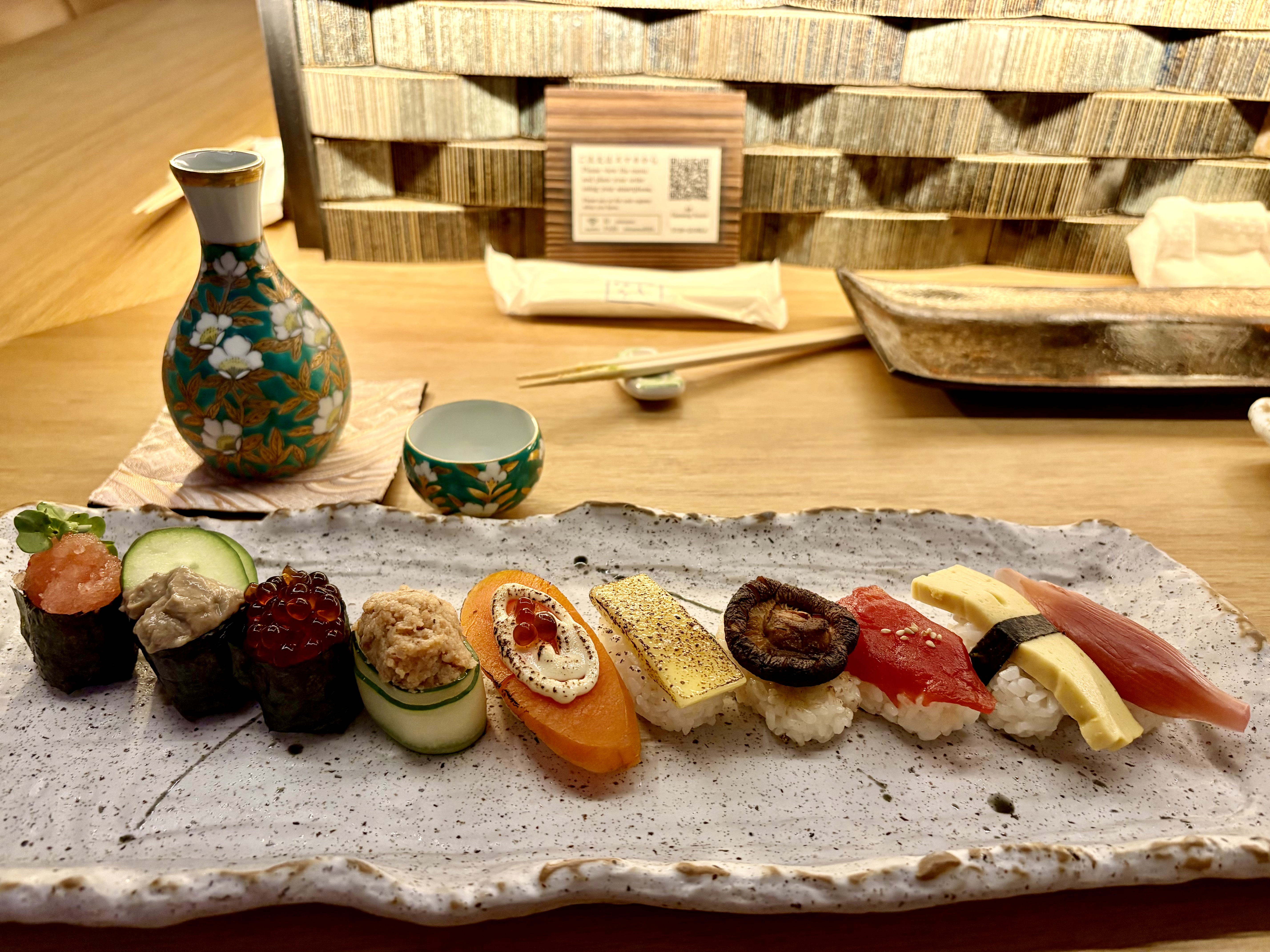 One of our best meals of the summer was at Shojin Sushi Minamo. They had absolutely incredible vegan sushi (photographed below). We stuffed ourselves by ordering sampler platters, where the carrot and salmon roe were the real stars, as well as individual rolls, a cake, and sake. After 34 pieces of sushi, they practically had to roll us out of there. We had every intention of going back another night, but our schedule never lined up with their hours again.