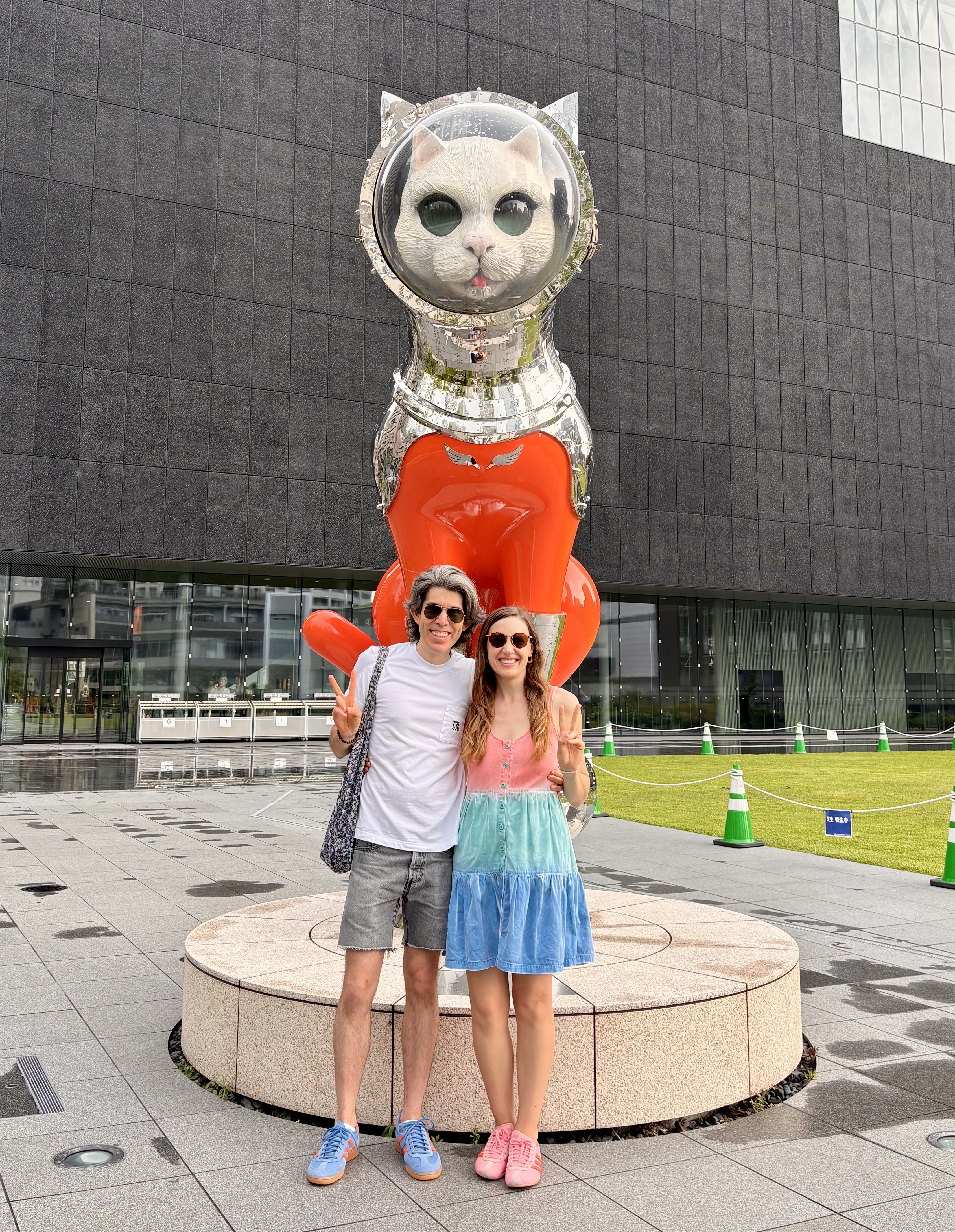 We went all the way to the Nakanoshima Museum of Art – even though we didn’t have time to go inside – because I was not about to miss Kenji Yanobe‘s statue Ship’s Cat. Standing 3.5 meters tall, this orange-and-metal guardian cat watches over the museum entrance. At this point, we hadn’t been to Big Cat Bang in the Ginza Six atrium in Tokyo and we only later found out that there are smaller sculptures in other parts of Osaka and Kyoto!